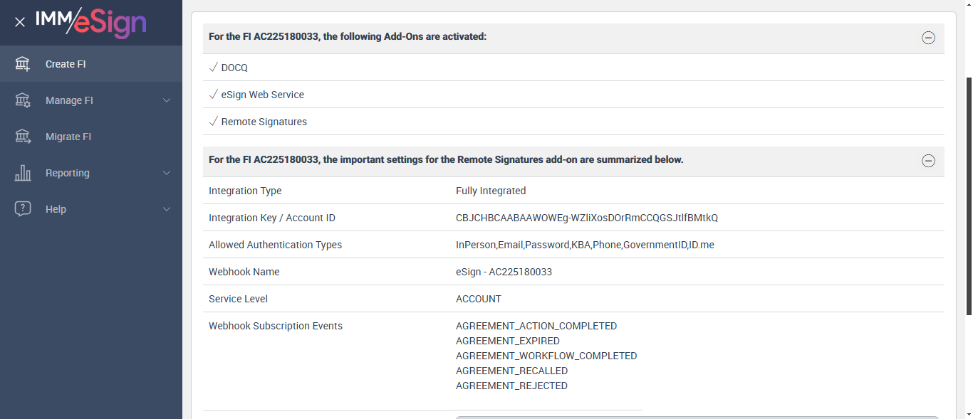 ({ZIP=, FiAdmin_FirstName=Bill, Dictionary=TeSign;XPLN, StarterEvalDays=, Description=Verify Adobe OEM Account In Remote Settings Summary Page - Fully Integrated Account, Login_User_ID=immadmin2@immesignqa.onmicrosoft.com, RemoteSettings=Integration Key / Account ID,Remote Agreement Options,Ad-Hoc Documents,Web Forms,Remote Templates,Send in Bulk , FiStatus=Completed, StarterChecks=Off, AdobeKey=CBJCHBCAABAAcgo7jQyMd_Qns4r71HxtB62fjfGeg7Z1, eSignURL=https://esignplusqa.immesign.com/TEAASP/Login.aspx, E-Vault=Off, FiAdmin_LastName=Teller, Filepath=, Name=AC, LocalDomain=immtestcu, TestID=VerifyAdobeOEMAccountInRemoteSettingsSummaryPage, FiAdmin_UserID=billteller@immtestcu.onmicrosoft.com, Verifast=Off, eSignPlus=Off, LacerPro=Off, RtmAuthTypes=InPerson,Email,Password,KBA,Phone,GovernmentID,ID.me, Notes=, IntegrationType=Fully Integrated, Session URL=https://esignnonprod.immesign.com/qa/tenantmanager/, GlobalAdmin=cuadmin@immtestcu.onmicrosoft.com, RemoteSign=Enable, TypeOfUser=IMM Admin2, eValultDays=, DrpSpot=Off, ErrorMsg=, Address2=, AZDomain=immtestcu.onmicrosoft.com, Address3=, VerifastEDays=, Address1=, City=, WrongAZDomain=, LCEvalDays=, State=, LoanCoupon=Off, Login_Password=iMM@2024, WrongFIID=, DrpEvalDays=, Country=, ClientID=3AAABLblqZhCQLd3zpFZKjJbAHz9Iltx9H66PUQv34Itep5CnjFb_Ehcl4GOj6Tx0Y5dNSNcgnfoFtmjwvBuopeEtD4QtE_yU, FIID=AC, Key=a958c406-5127-4d2e-9d24-d441b447fa6a})