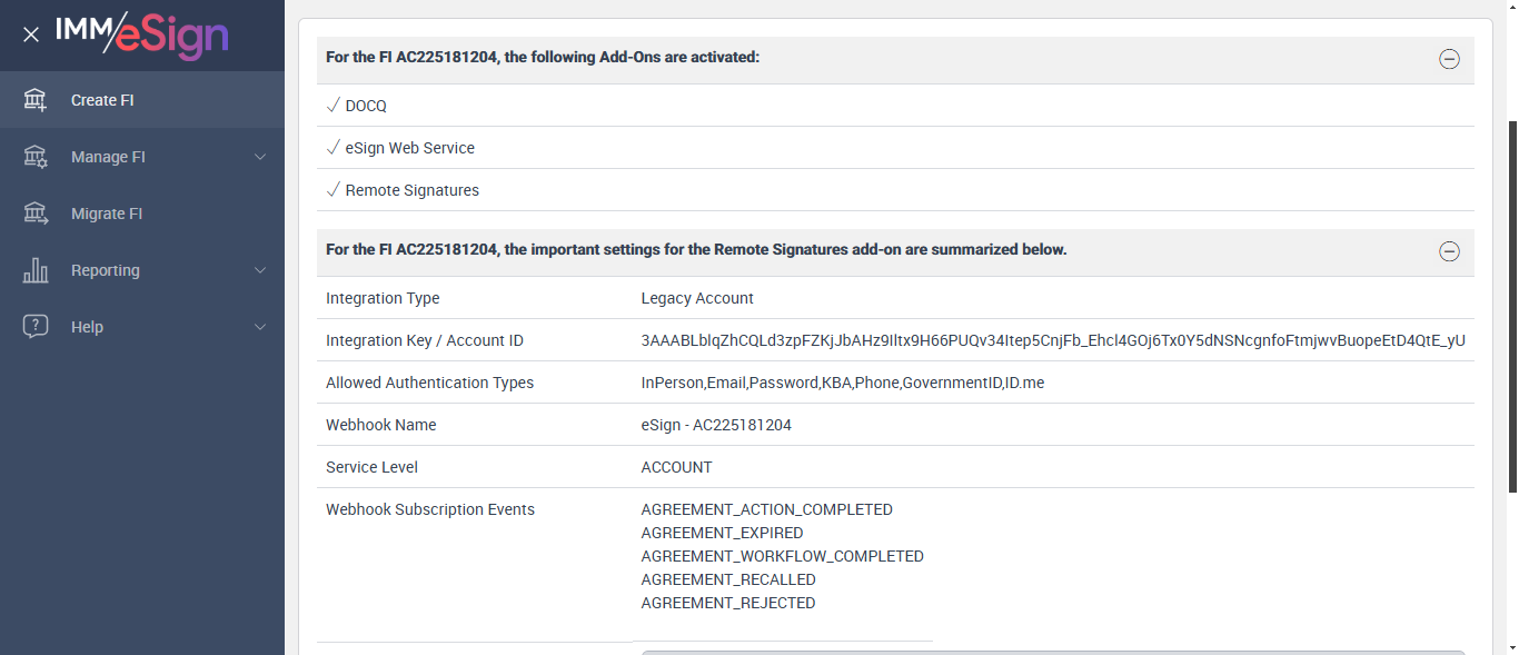 ({ZIP=, FiAdmin_FirstName=Bill, Dictionary=TeSign;XPLN, StarterEvalDays=, Description=Verify Adobe OEM Account In Remote Settings Summary Page - Legacy Account, Login_User_ID=immadmin2@immesignqa.onmicrosoft.com, RemoteSettings=Integration Key / Account ID,Remote Agreement Options,Ad-Hoc Documents,Web Forms,Remote Templates,Send in Bulk , FiStatus=Completed, StarterChecks=Off, AdobeKey=CBJCHBCAABAAcgo7jQyMd_Qns4r71HxtB62fjfGeg7Z1, eSignURL=https://esignplusqa.immesign.com/TEAASP/Login.aspx, E-Vault=Off, FiAdmin_LastName=Teller, Filepath=, Name=AC, LocalDomain=immtestcu, TestID=VerifyAdobeOEMAccountInRemoteSettingsSummaryPage, FiAdmin_UserID=billteller@immtestcu.onmicrosoft.com, Verifast=Off, eSignPlus=Off, LacerPro=Off, RtmAuthTypes=InPerson,Email,Password,KBA,Phone,GovernmentID,ID.me, Notes=, IntegrationType=Legacy Account, Session URL=https://esignnonprod.immesign.com/qa/tenantmanager/, GlobalAdmin=cuadmin@immtestcu.onmicrosoft.com, RemoteSign=Enable, TypeOfUser=IMM Admin2, eValultDays=, DrpSpot=Off, ErrorMsg=, Address2=, AZDomain=immtestcu.onmicrosoft.com, Address3=, VerifastEDays=, Address1=, City=, WrongAZDomain=, LCEvalDays=, State=, LoanCoupon=Off, Login_Password=iMM@2024, WrongFIID=, DrpEvalDays=, Country=, ClientID=3AAABLblqZhCQLd3zpFZKjJbAHz9Iltx9H66PUQv34Itep5CnjFb_Ehcl4GOj6Tx0Y5dNSNcgnfoFtmjwvBuopeEtD4QtE_yU, FIID=AC, Key=a958c406-5127-4d2e-9d24-d441b447fa6a})