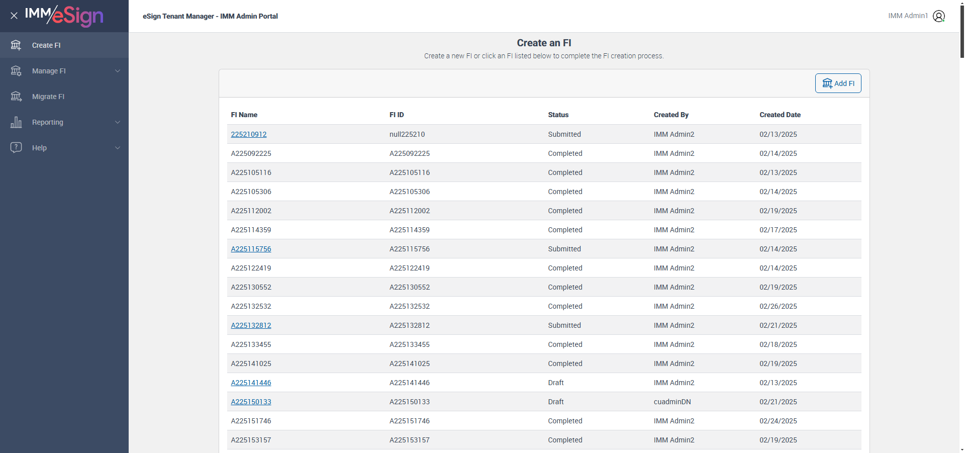 Successfully navigated to 'Create an FI' page [ScreenShot]