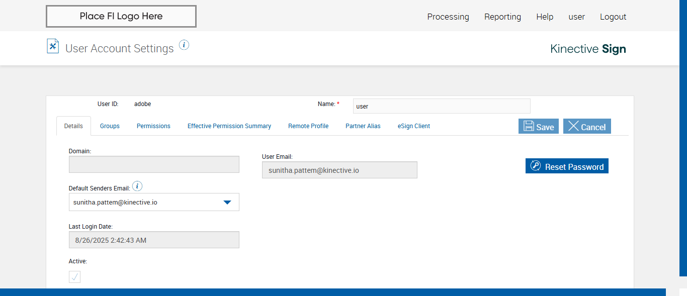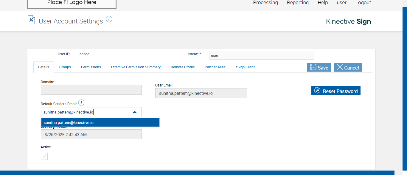 (verify Default Sender Field For Anonyms FI In User Maintenance And User Account Settings Page)