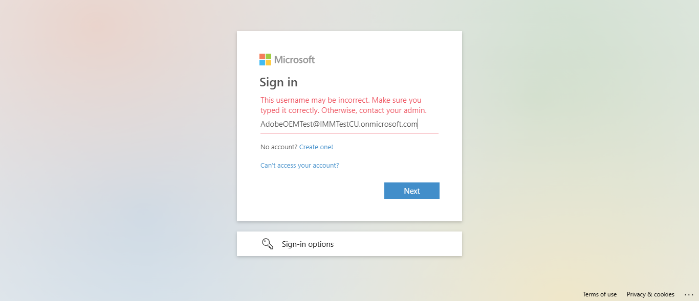 Actual(Passed): Successfully verified Not able to login with 'Group' email This username may be incorrect. Make sure you typed it correctly. Otherwise, contact your admin.[ScreenShot]