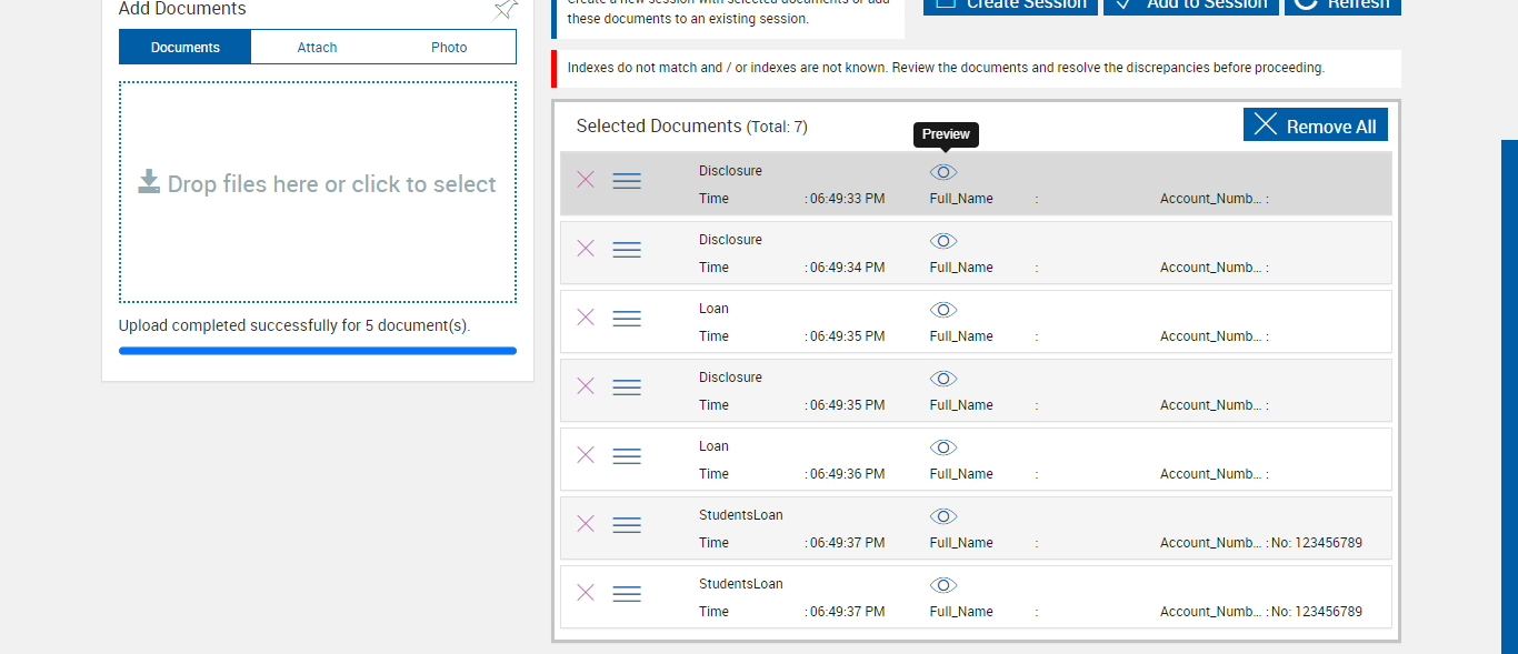 Actual(Passed): Document 'StudentsLoan' was dragged and dropped from position '7' to '1'[ScreenShot]