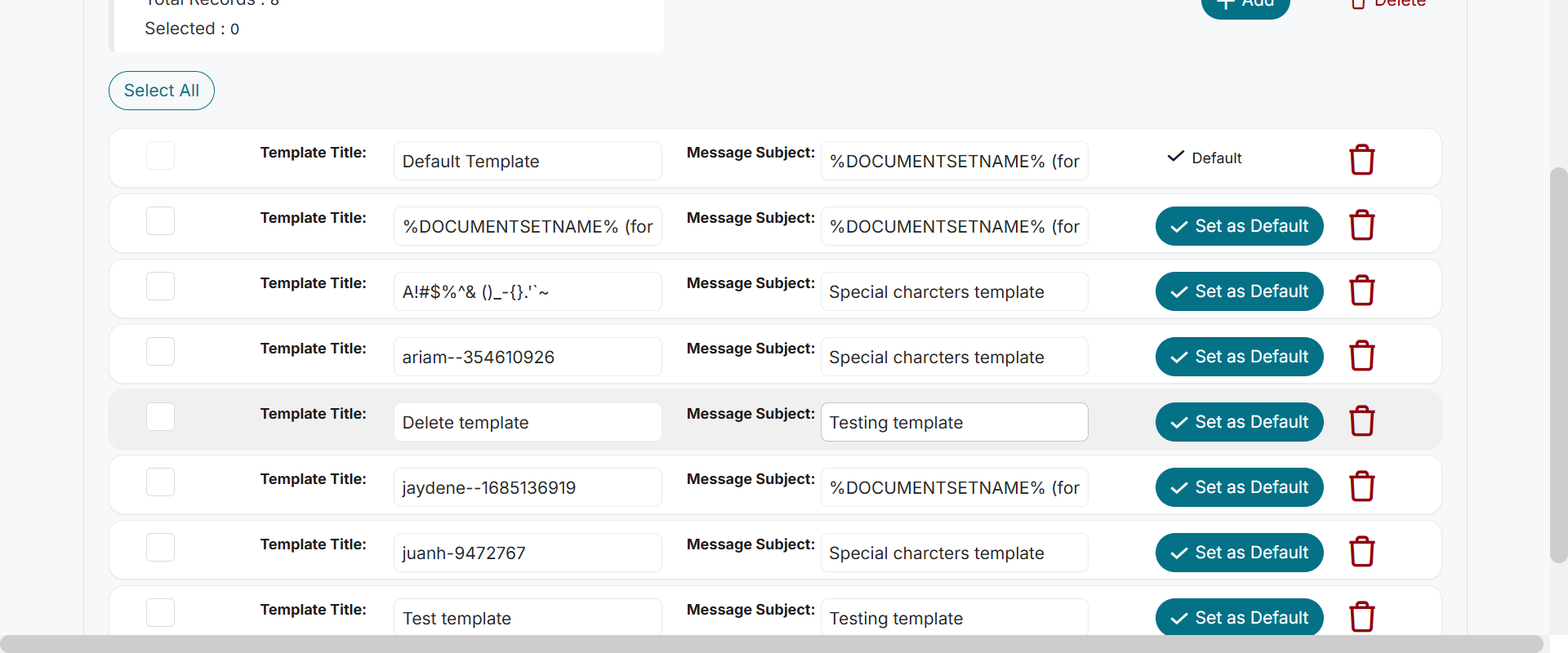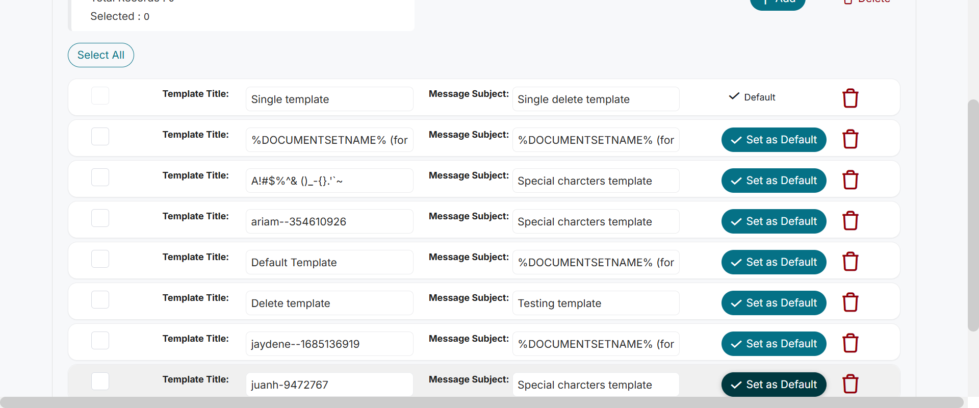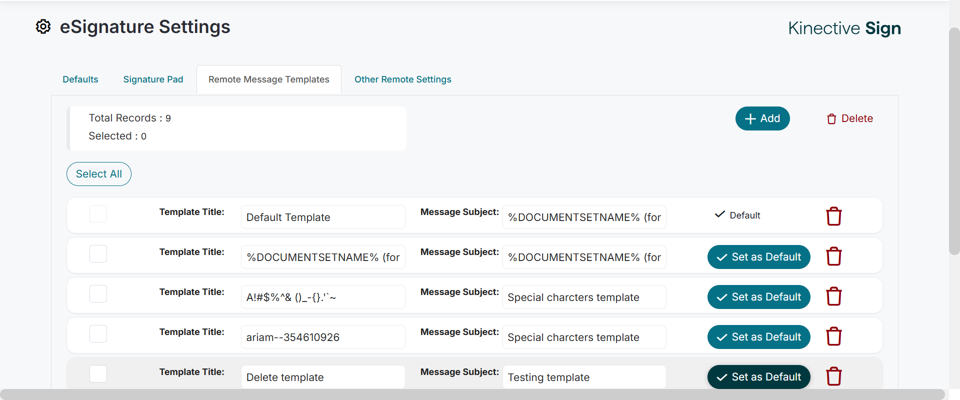 Actual(Passed): Successfully displayed the default template in 'ESignature Management' page[ScreenShot]