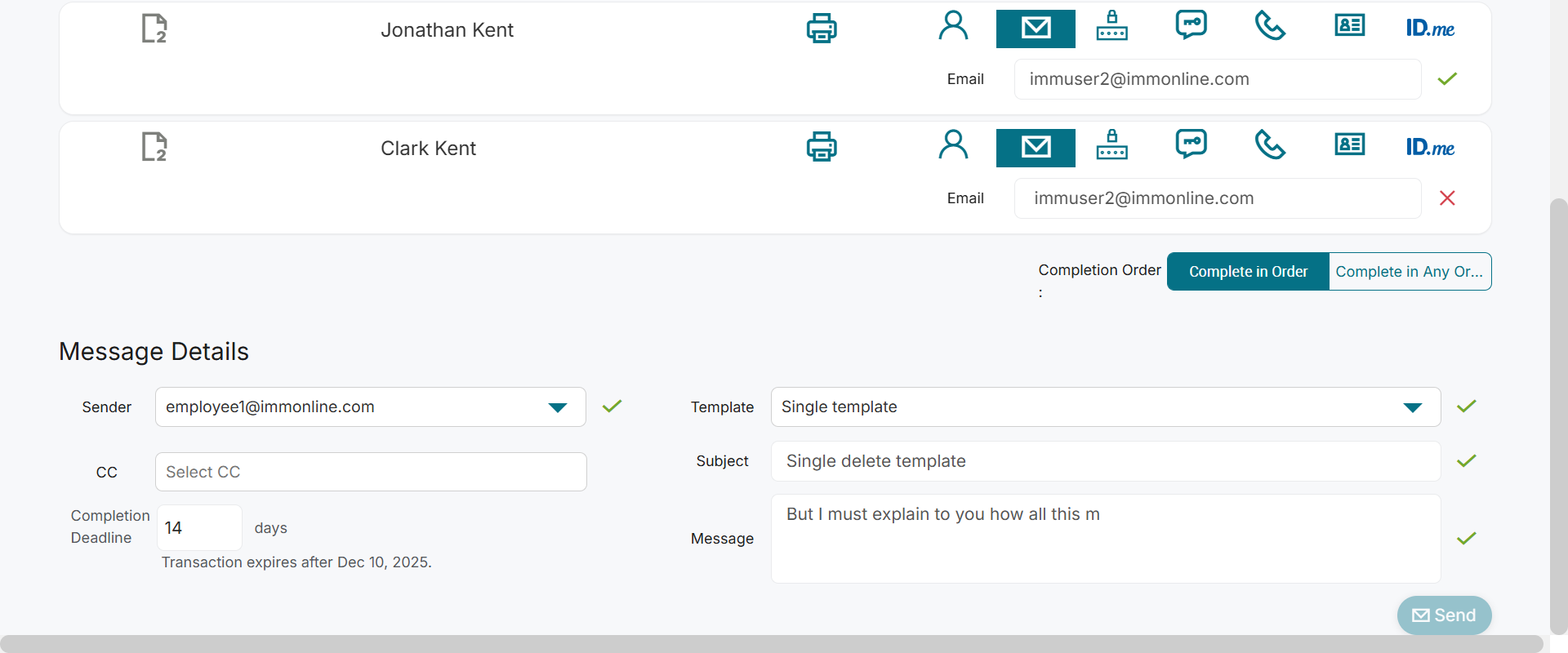 Expected: 'Send' button should be enabled