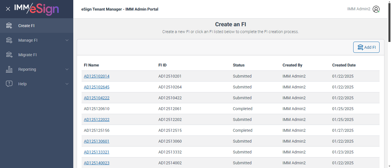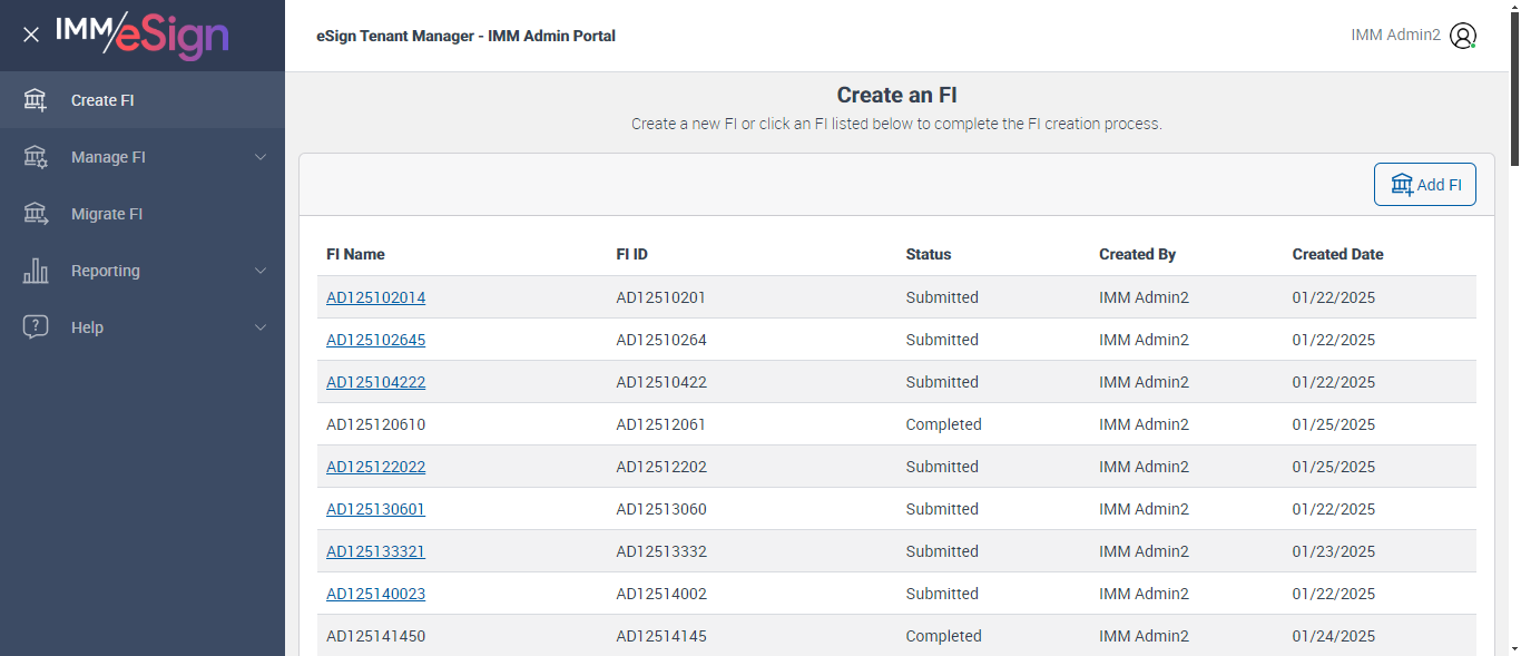 Successfully navigated to 'Create an FI' page [ScreenShot]