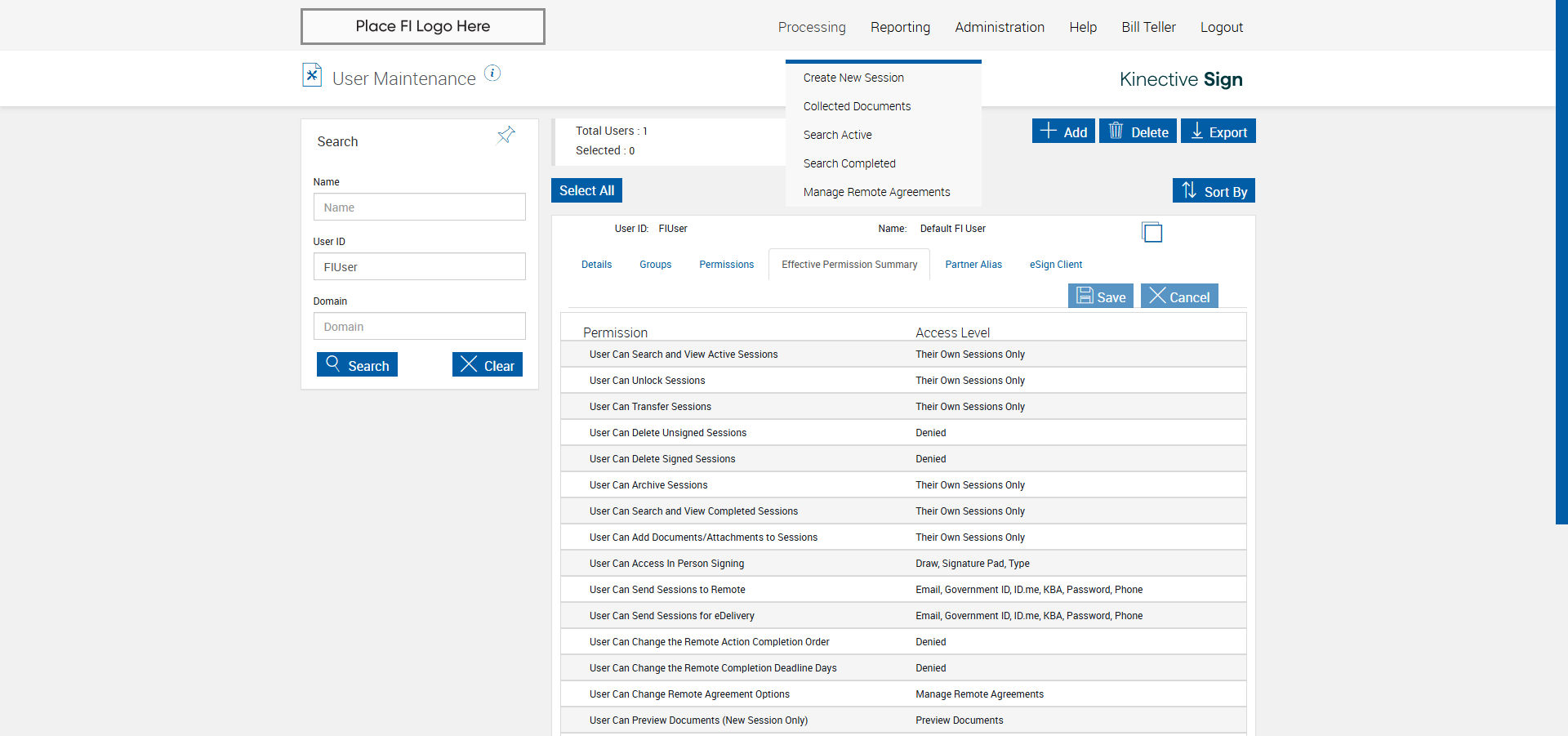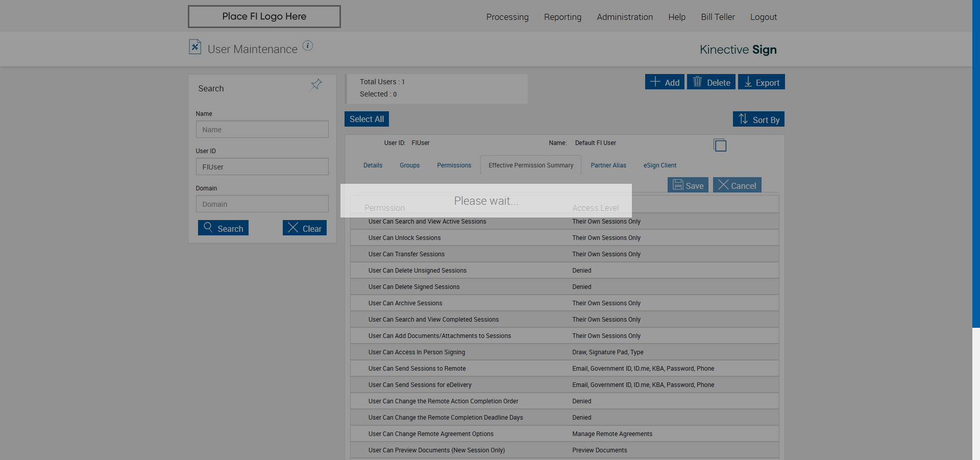 | 01:43:35 PM | **** Create Fi with Remote Disabled, then enable in mangeFi. Verify Remote Options in eSign with Fully Integrated key **** | |
