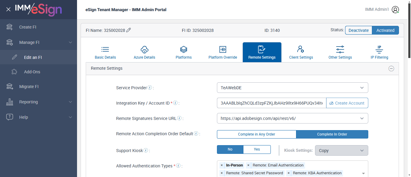 | {ZIP=, Login_User_ID=immadmin1@immesignqa.onmicrosoft.com, RemoteSettings=Ad Hoc Document,Reusable Templates,Manage Remote Agreements, FiStatus=, WebForm=, AdobeKey=, FiAdmin_LastName=Teller,Doe, Name=, LocalDomain=immtestcu, Edit_UserID=billteller@immtestcu.onmicrosoft.com,janedoe@immtestcu.onmicrosoft.com, Adhoc_Doc=, eSignPlus=, RtmAuthTypes=, Fully_Intgrt_Key=, IntegrationType=Fully Integrated, SendInBulk=, RemoteSign=Enable, DrpSpot=, RemoteSign_ManageFI=, Reusable_Temp=, AZDomain=immtestcu.onmicrosoft.com, VerifastEDays=, City=, WrongAZDomain=, LCEvalDays=, State=, LoanCoupon=, Login_Password=iMM@2025, Country=, ClientID=3AAABLblqZhCQLd3zpFZKjJbAHz9Iltx9H66PUQv34Itep5CnjFb_Ehcl4GOj6Tx0Y5dNSNcgnfoFtmjwvBuopeEtD4QtE_yU, FIID=, Key=, FiAdmin_FirstName=Bill,Jane, Dictionary=TeSign;XPLN, Sign_RmtAgree_NotChecked=Send In Bulk,Web Form, StarterEvalDays=, Description=verify Remote Agreement Options When Remote Signatures Enabled - Fully Integrated Key, StarterChecks=, eSignURL=https://esignplusqa.immesign.com/TEAASP/Login.aspx, E-Vault=, Filepath=, TestID=verifyRemoteAgreementOptionsWhenRemoteSignaturesEnabled, FiAdmin_UserID=billteller@immtestcu.onmicrosoft.com,janedoe@immtestcu.onmicrosoft.com, EditFIAdmin_FName=Billi,Jeny, Verifast=, LacerPro=, Notes=, Session URL=https://esignnonprod.immesign.com/qa/tenantmanager/, GlobalAdmin=cuadmin@immtestcu.onmicrosoft.com, TypeOfUser=, eValultDays=, ErrorMsg=, Address2=, Address3=, Address1=, Sign_Password=iMM@2022, WrongFIID=, DrpEvalDays=, EditFiadmin_LName=Teller1,Andy, Sign_RmtAgree_checked=Ad Hoc Document,Reusable Templates,Manage Remote Agreements} |