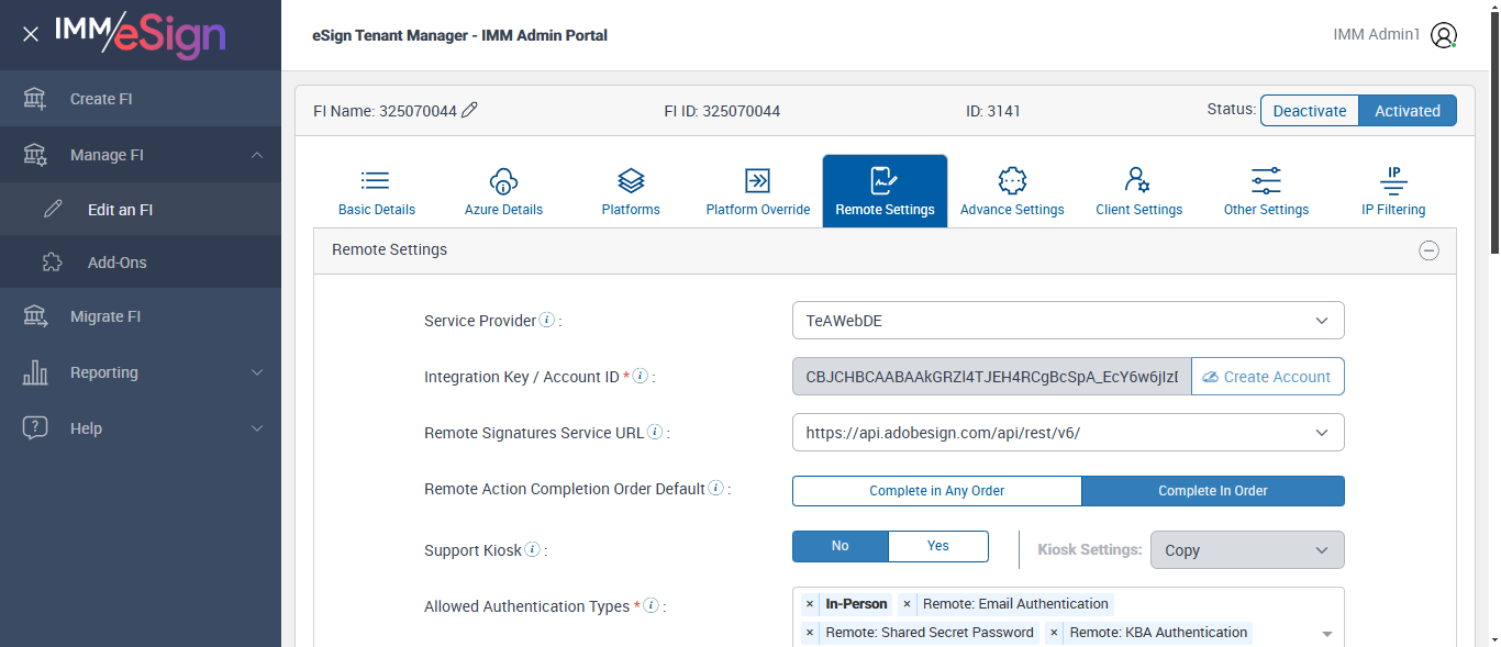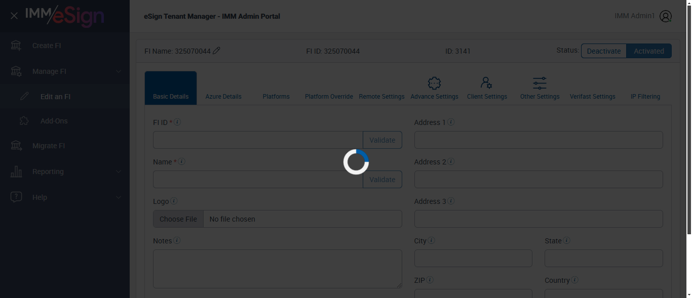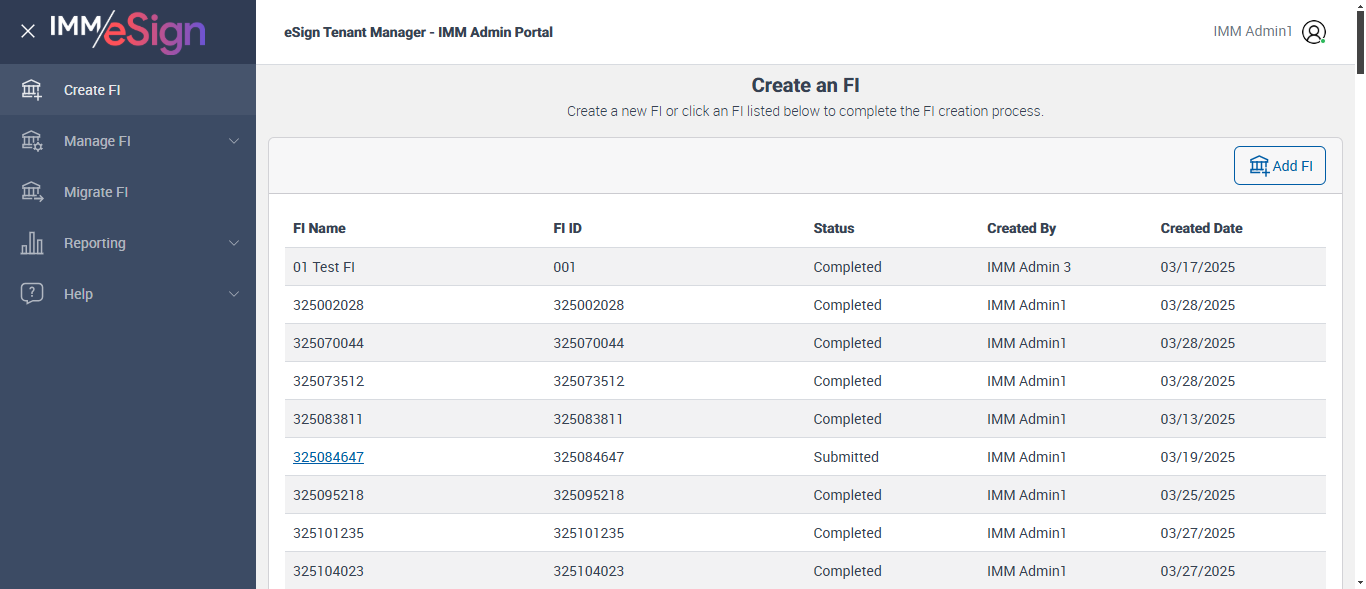 | 07:48:01 am | Login as FiAdmin with Existing FI : 325073512 | |