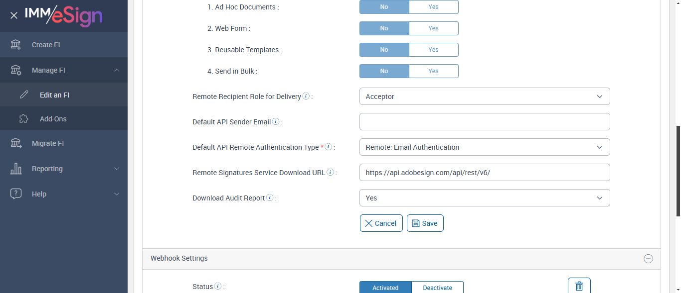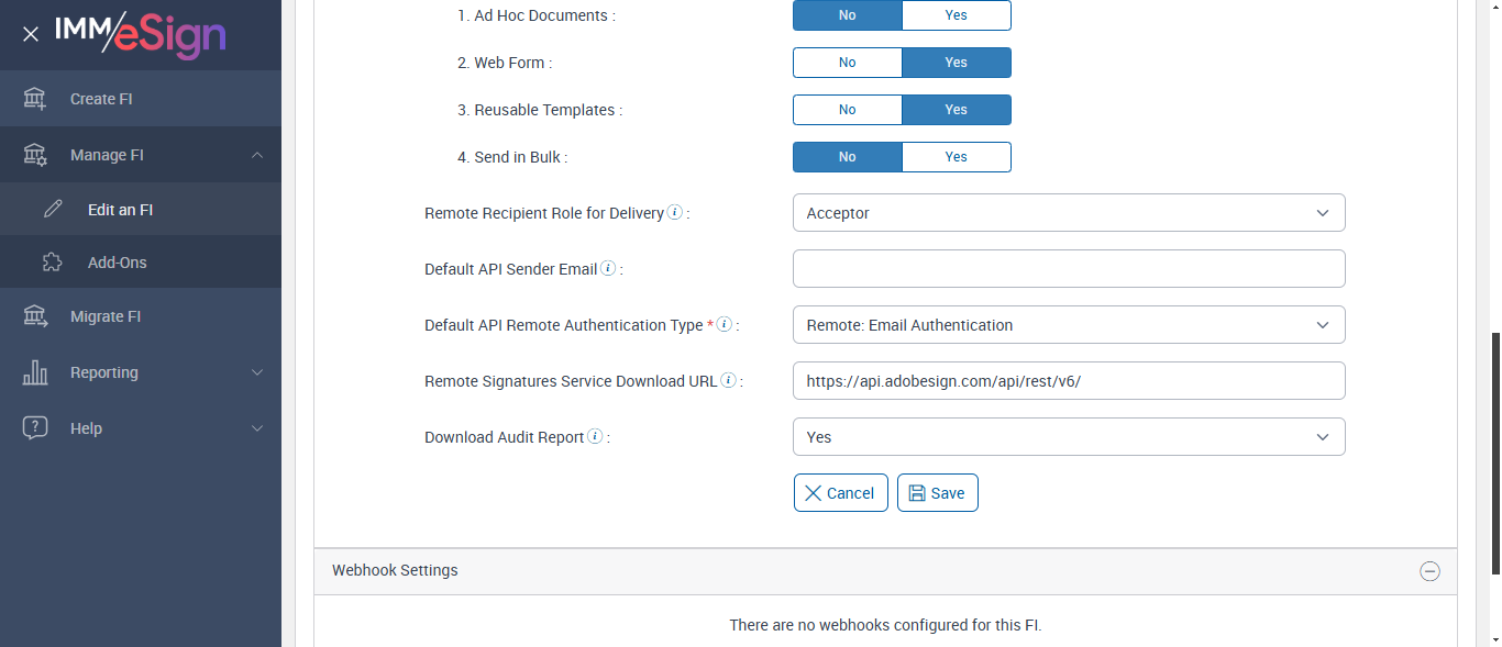 | 07:47:14 am | Select which Adobe Acrobat Sign capabilities should be enabled for the institution: ad hoc “fill and sign” documents, web forms, reusable library templates, and bulk sending. | |