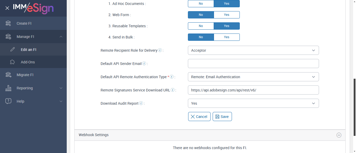 | 01:34:37 pm | Select which Adobe Acrobat Sign capabilities should be enabled for the institution: ad hoc “fill and sign” documents, web forms, reusable library templates, and bulk sending. | |