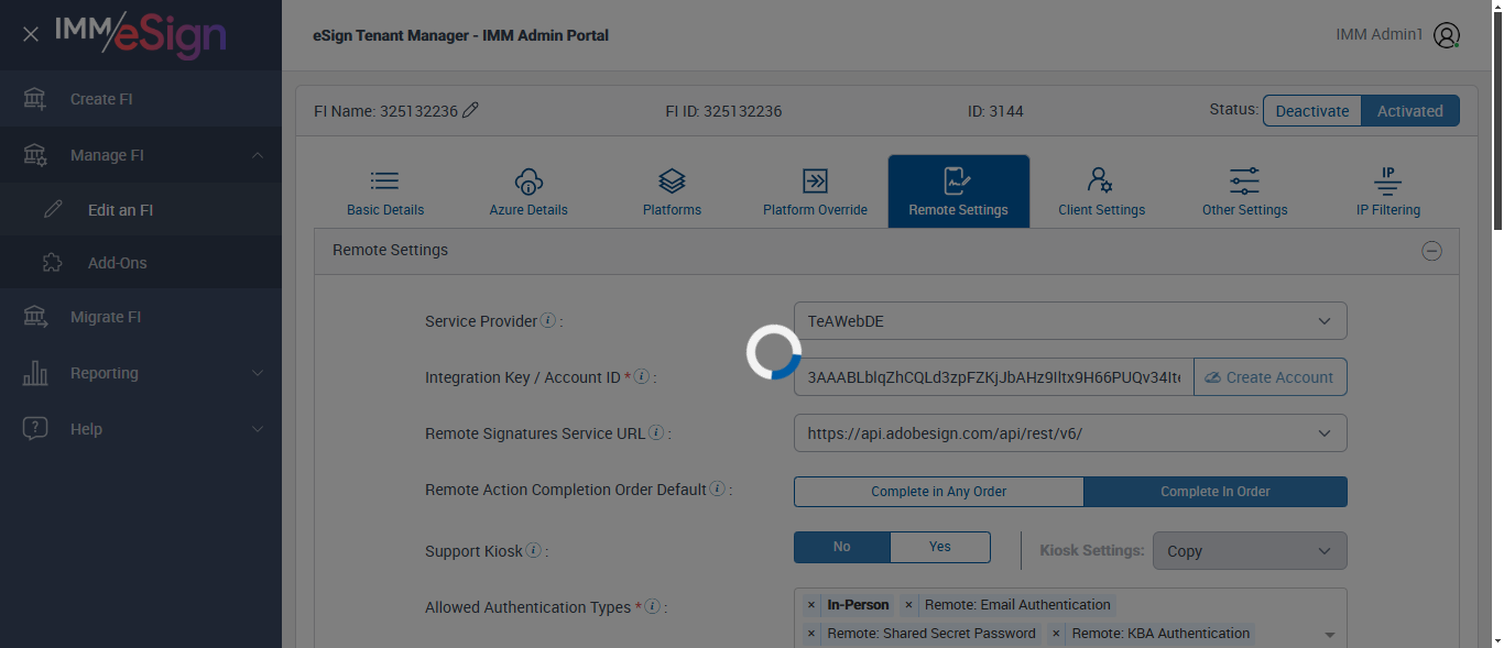 | 01:35:24 pm | Login as FiAdmin with Existing FI : 325132236 | |