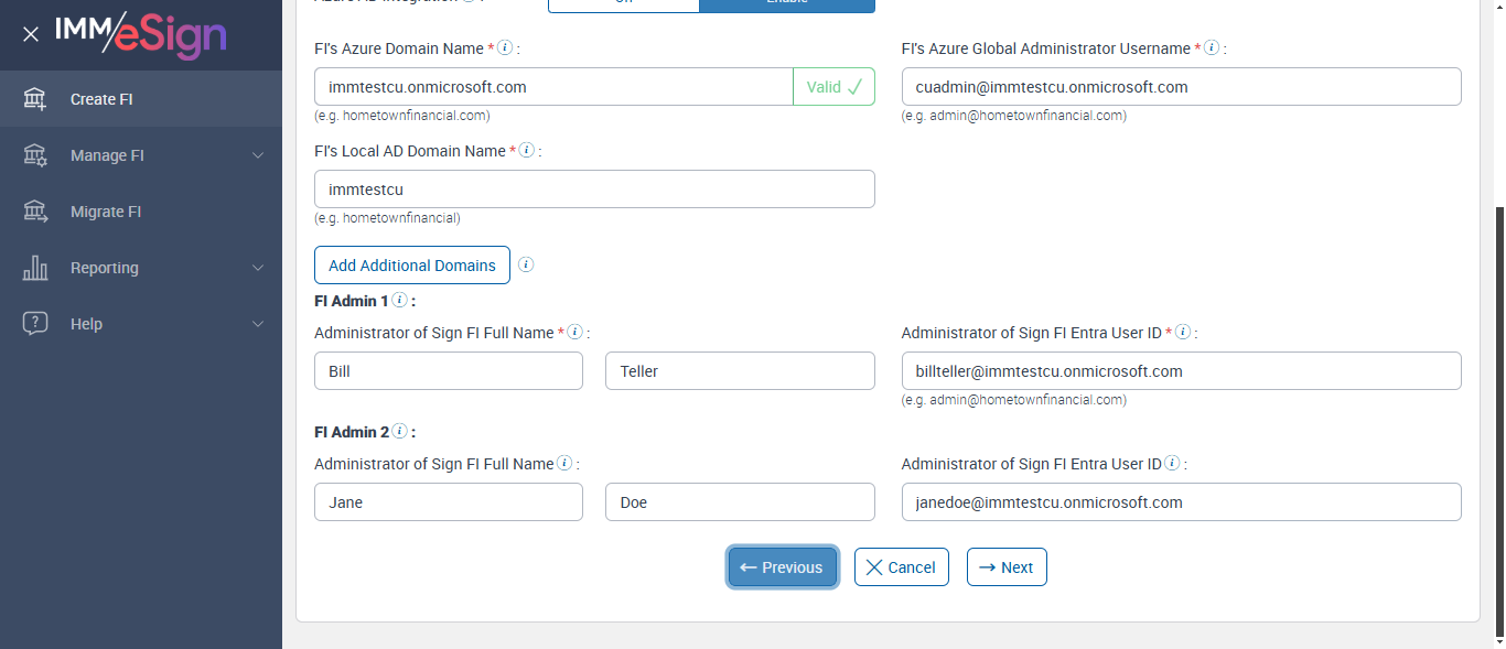 [ScreenShot] Value added in Fi Admin 2 User ID - janedoe@immtestcu.onmicrosoft.com