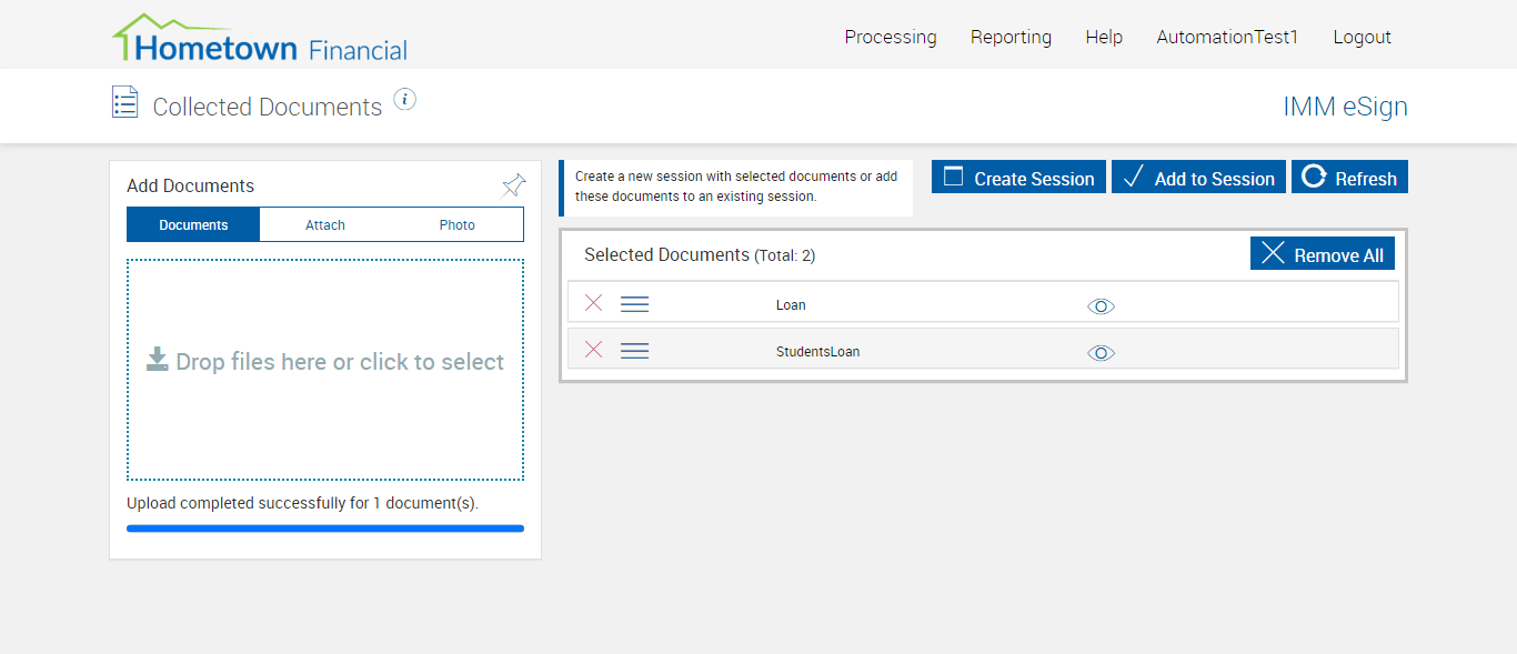 Actual(Failed): Failed to upload Loan Application Form.pdf file in the collected Document Page[ScreenShot]