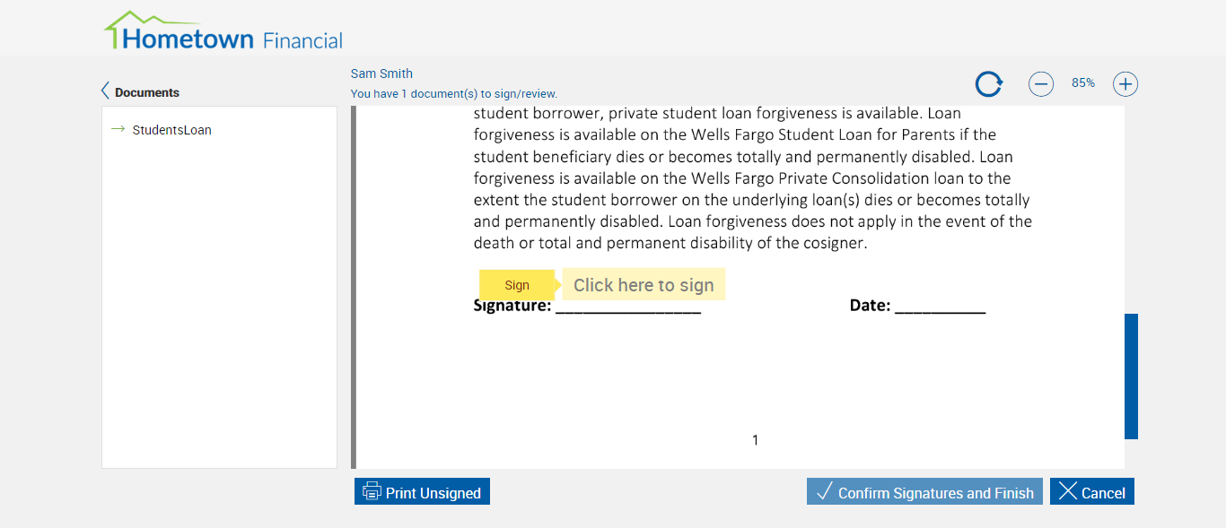 Actual(Failed): Failed to upload Students Loan.pdf file in the collected Document Page[ScreenShot]
