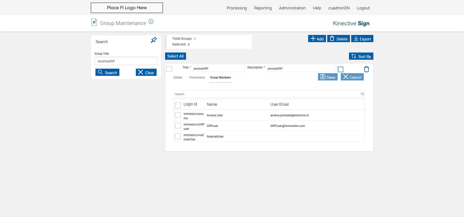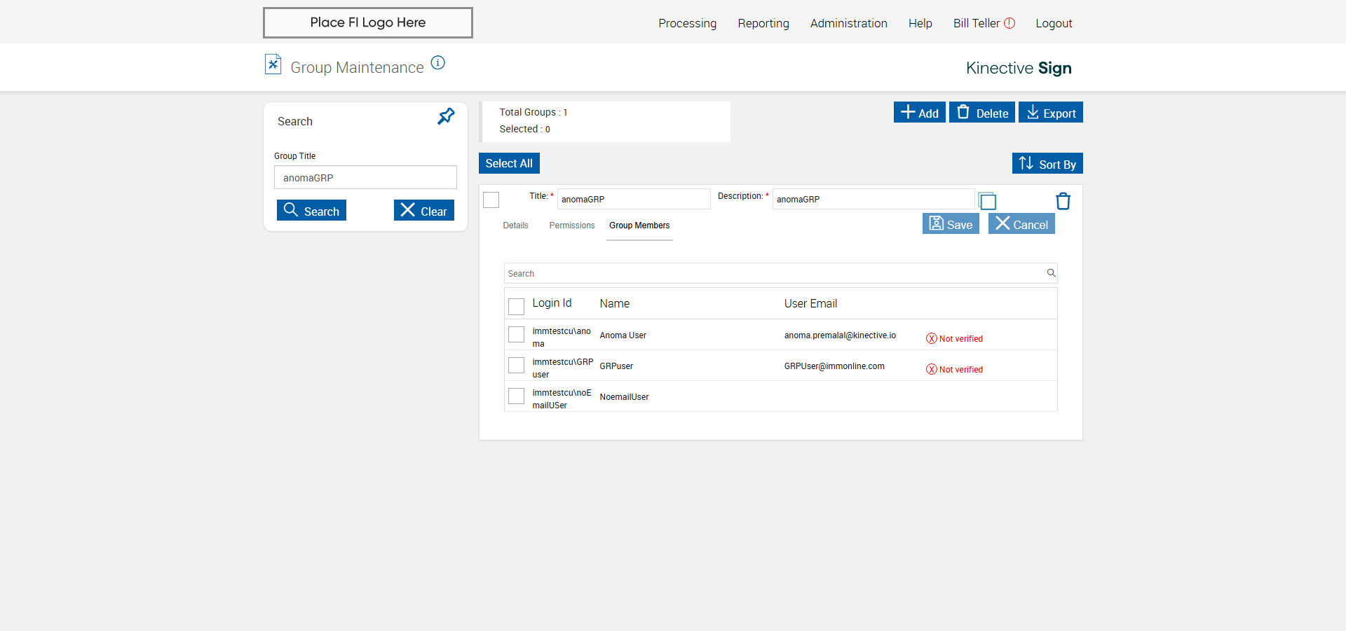 verifyUserEmailInGroupMaintenancePage - Fully Integrated - Plus FI
