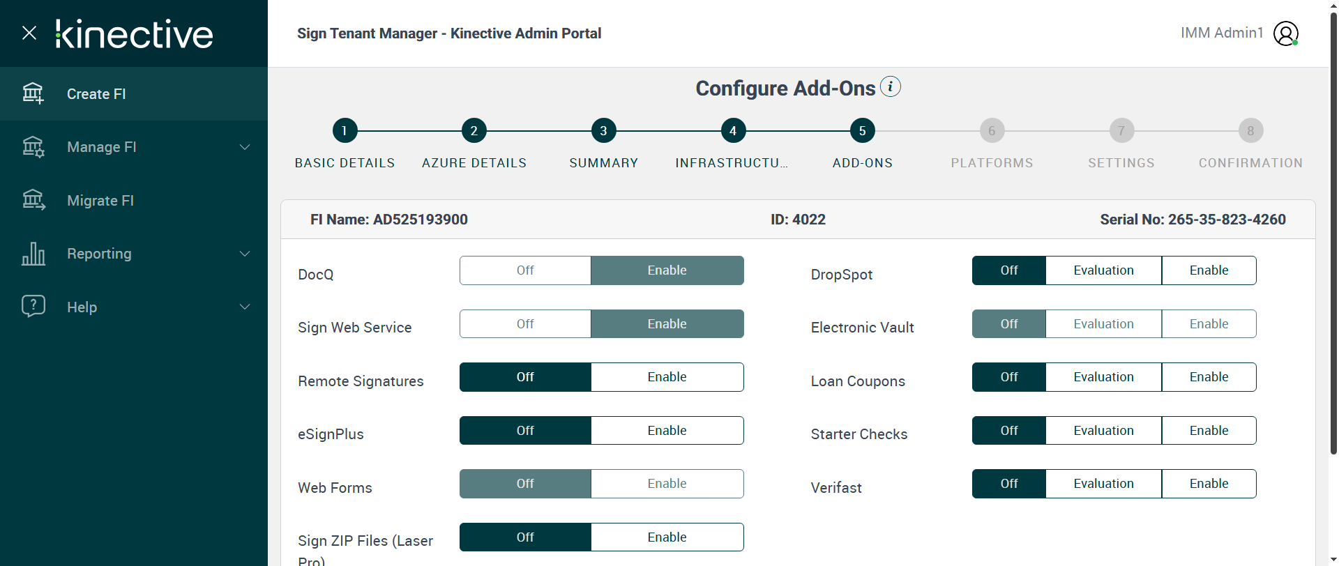 ({ZIP=, Login_User_ID=immadmin1@immesignqa.onmicrosoft.com, RemoteSettings=Ad Hoc Document,Web Form,Reusable Templates, FiStatus=, WebForm=Yes, AdobeKey=, FiAdmin_LastName=Teller, Name=, LocalDomain=immtestcu, Adhoc_Doc=Yes, eSignPlus=Off, RtmAuthTypes=, IntegrationType=Fully Integrated, NotUSerName=, SendInBulk=No, RemoteSign=Off, DrpSpot=, Reusable_Temp=Yes, AZDomain=immtestcu.onmicrosoft.com, VerifastEDays=, City=, WrongAZDomain=, LCEvalDays=, State=, LoanCoupon=, Login_Password=iMM@2025, Country=, ClientID=, FIID=, Key=, FiAdmin_FirstName=Bill, Dictionary=TeSign;XPLN, Sign_RmtAgree_NotChecked=Send in Bulk, StarterEvalDays=, Description=Verify Create Fi Complete Flow With Fully Integrated Account when Remote disable, StarterChecks=, eSignURL=https://esignplusqa.immesign.com/TEAASP/Login.aspx, E-Vault=, Filepath=, TestID=VerifyCreateFiCompleteFlowWithOEMandLegacy, FiAdmin_UserID=billteller@immtestcu.onmicrosoft.com, Verifast=, LacerPro=, Notes=, Session URL=https://esignnonprod.immesign.com/qa/tenantmanager/, GlobalAdmin=cuadmin@immtestcu.onmicrosoft.com, TypeOfUser=, eValultDays=, MenuUserName=, ErrorMsg=, Address2=, Address3=, Address1=, Sign_Password=iMM@2022, UserTooltip=, WrongFIID=, DrpEvalDays=, Sign_RmtAgree_checked=Ad Hoc Document,Web Form,Reusable Templates,Manage Remote Agreements})