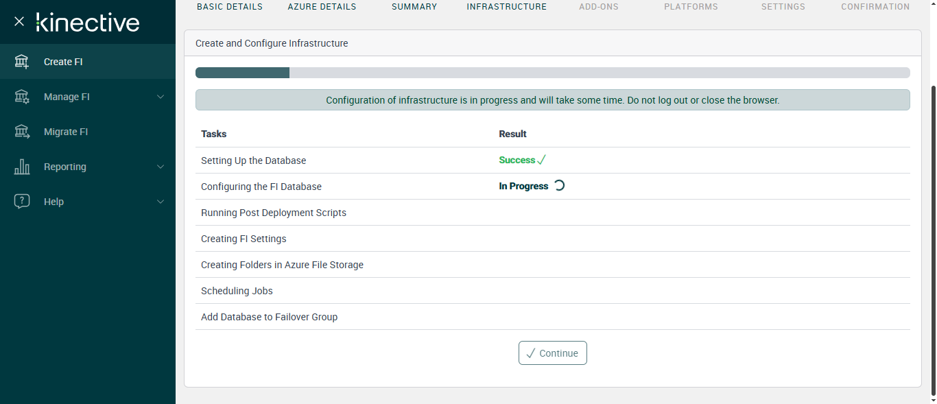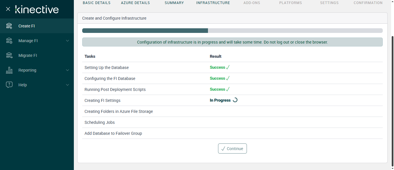 Successfully Configured 'Creating FI Settings'