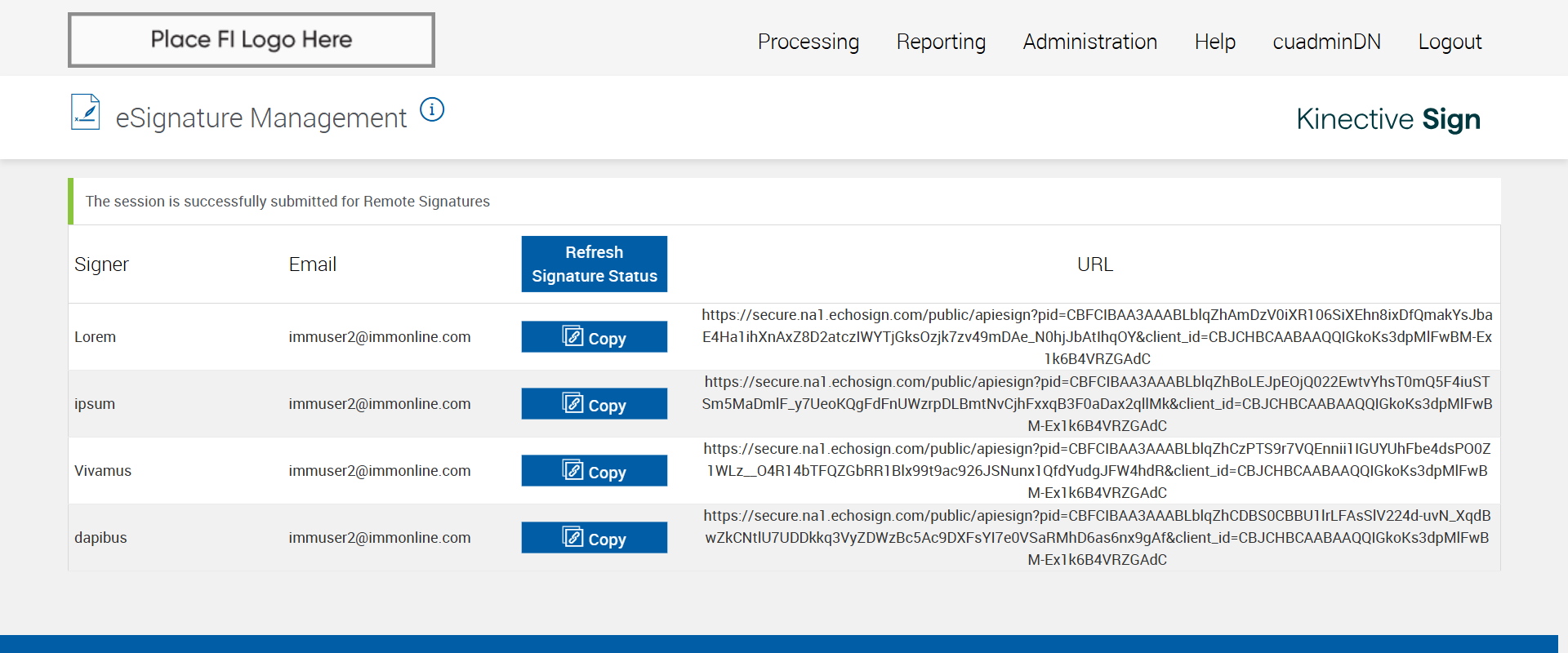Successfully navigated to the 'eSignature Management' page [ScreenShot]