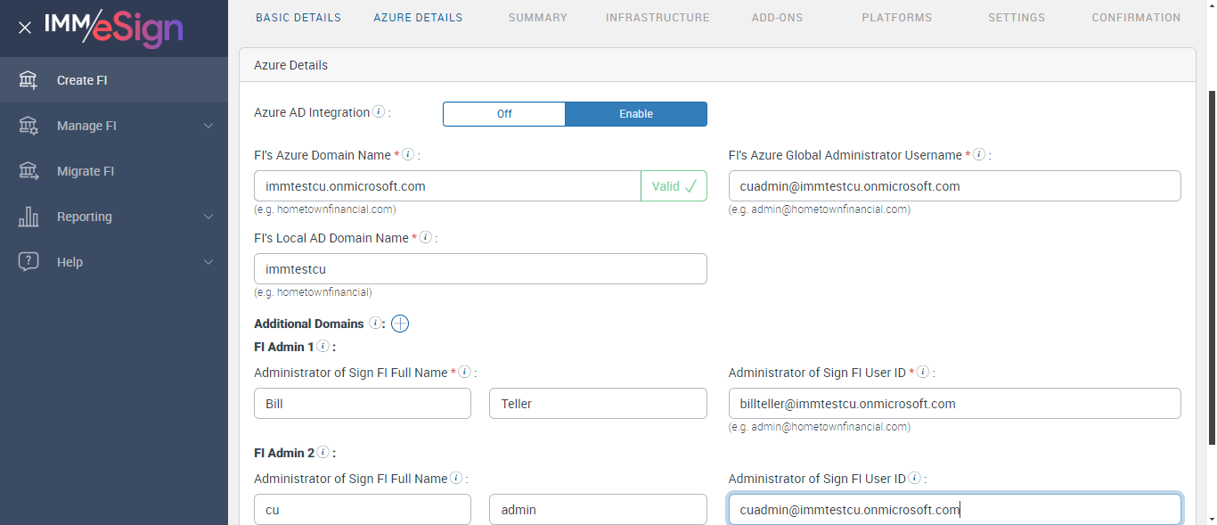 VerifyCreateFiAzureDetailsFiAdmin1AndFiAdmin2