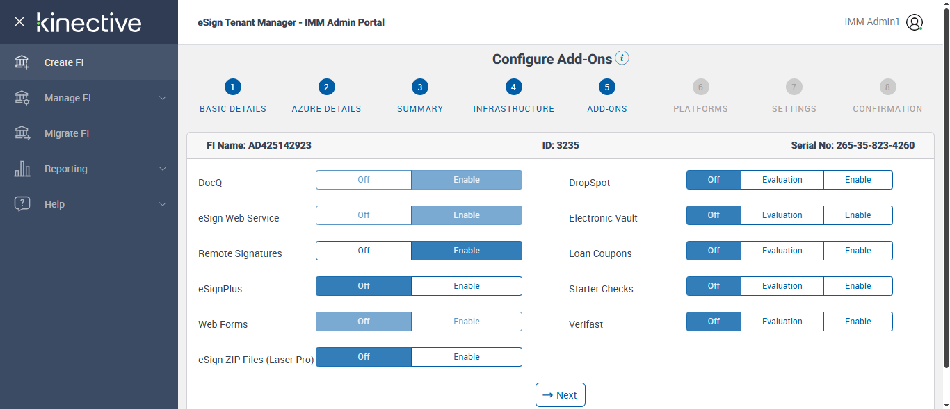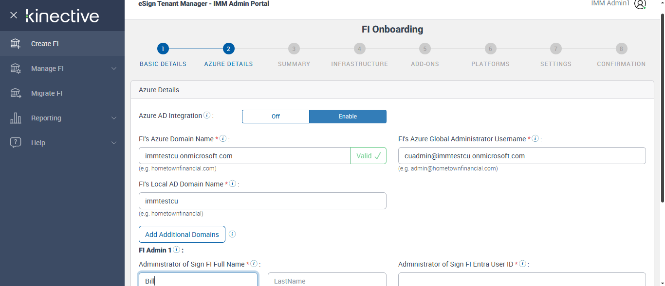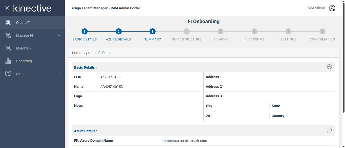 ({ZIP=, Login_User_ID=immadmin1@immesignqa.onmicrosoft.com, RemoteSettings=Ad Hoc Document,Web Form,Reusable Templates, FiStatus=, AdobeKey=, FiAdmin_LastName=Teller, Name=, LocalDomain=immtestcu, eSignPlus=, RtmAuthTypes=, IntegrationType=Fully Integrated, NotUSerName=, RemoteSign=Enable, DrpSpot=, AZDomain=immtestcu.onmicrosoft.com, VerifastEDays=, City=, WrongAZDomain=, LCEvalDays=, State=, LoanCoupon=, Login_Password=iMM@2025, Country=, ClientID=, FIID=, Key=, FiAdmin_FirstName=Bill, Dictionary=TeSign;XPLN, Sign_RmtAgree_NotChecked=Send in Bulk, StarterEvalDays=, Description=Verify Create Fi Complete Flow With Fully Integrated Account, StarterChecks=, eSignURL=https://esignplusqa.immesign.com/TEAASP/Login.aspx, E-Vault=, Filepath=, TestID=VerifyCreateFiCompleteFlowWithOEMandLegacy, FiAdmin_UserID=billteller@immtestcu.onmicrosoft.com, Verifast=, LacerPro=, Notes=, Session URL=https://esignnonprod.immesign.com/qa/tenantmanager/, GlobalAdmin=cuadmin@immtestcu.onmicrosoft.com, TypeOfUser=, eValultDays=, MenuUserName=, ErrorMsg=, Address2=, Address3=, Address1=, Sign_Password=iMM@2022, UserTooltip=, WrongFIID=, DrpEvalDays=, Sign_RmtAgree_checked=Ad Hoc Document,Web Form,Reusable Templates,Manage Remote Agreements})