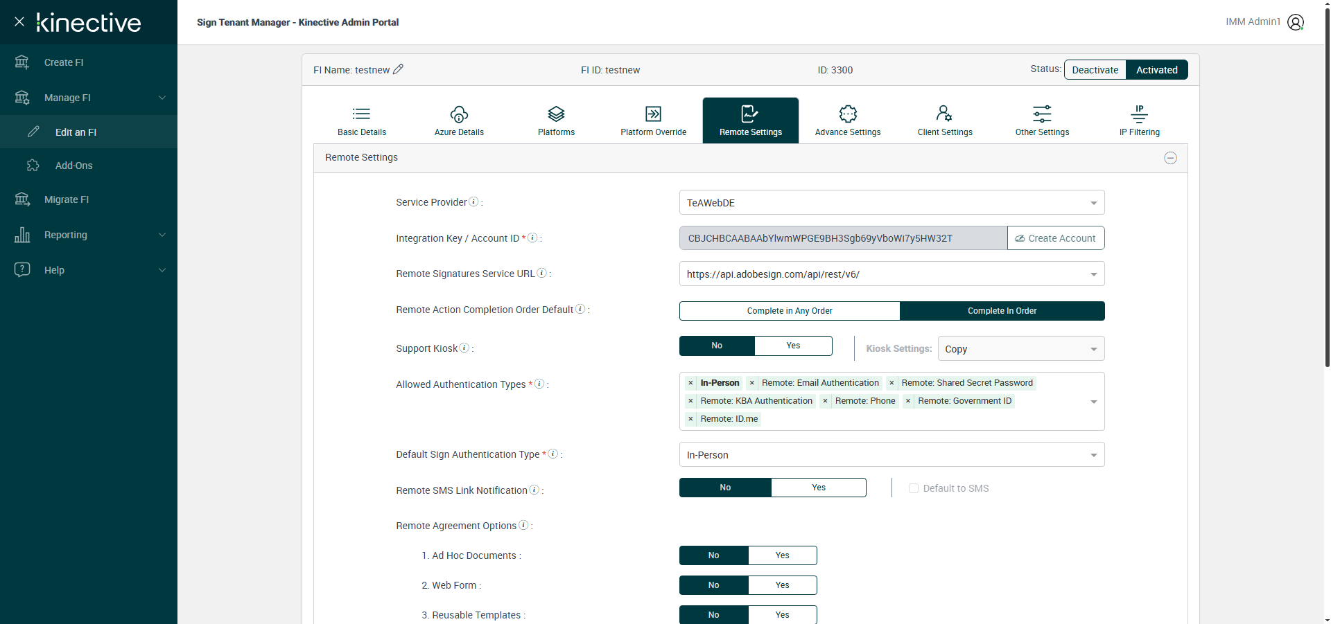 | {ZIP=, Login_User_ID=immadmin1@immesignqa.onmicrosoft.com, RemoteSettings=Ad Hoc Document,Web Form,Reusable Templates, FiStatus=, WebForm=No, AdobeKey=, RemoteAgreement=Disable, FiAdmin_LastName=Teller,Doe, Name=, LocalDomain=immtestcu, Edit_UserID=joeteller@immtestcu.onmicrosoft.com, Adhoc_Doc=No, eSignPlus=, RtmAuthTypes=, User_ID=, Fully_Intgrt_Key=, IntegrationType=Fully Integrated, AdvaceSettings=, SendInBulk=No, RemoteSign=enable, DrpSpot=, Manager User Email ID=, RemoteSign_ManageFI=Enable, Reusable_Temp=No, AZDomain=immtestcu.onmicrosoft.com, VerifastEDays=, LCEvalDays=, State=, LoanCoupon=, Login_Password=iMM@2025, Country=, ClientID=3AAABLblqZhCQLd3zpFZKjJbAHz9Iltx9H66PUQv34Itep5CnjFb_Ehcl4GOj6Tx0Y5dNSNcgnfoFtmjwvBuopeEtD4QtE_yU, Domain=, FIID=, Key=, FiAdmin_FirstName=Bill,Jane, Dictionary=TeSign;XPLN, Sign_RmtAgree_NotChecked=, StarterEvalDays=, Description=VerifyEffectiveSummaryPagesWhenRemoteAgrementDisabled - Fully Integrated Plus FI - RemoteSign Enabled, StarterChecks=, newFIID=Plusoem, eSignURL=https://esignplusqa.immesign.com/TEAASP/Login.aspx, E-Vault=, Filepath=, TestID=VerifyEffectiveSummaryPagesWhenRemoteAgrementDisabled, PlusFI=, FiAdmin_UserID=billteller@immtestcu.onmicrosoft.com,janedoe@immtestcu.onmicrosoft.com, EditFIAdmin_FName=, FICreated=, User Email ID=, Verifast=, LacerPro=, Session URL=https://esignnonprod.immesign.com/qa/tenantmanager/, GlobalAdmin=cuadmin@immtestcu.onmicrosoft.com, TypeOfUser=, eValultDays=, UserName=joe teller, ManagerExist=, Manager User Display Name=, Manager User ID=, Sign_Password=iMM@2022, DrpEvalDays=, EditFiadmin_LName=, Sign_RmtAgree_checked=Manage Remote Agreements} |