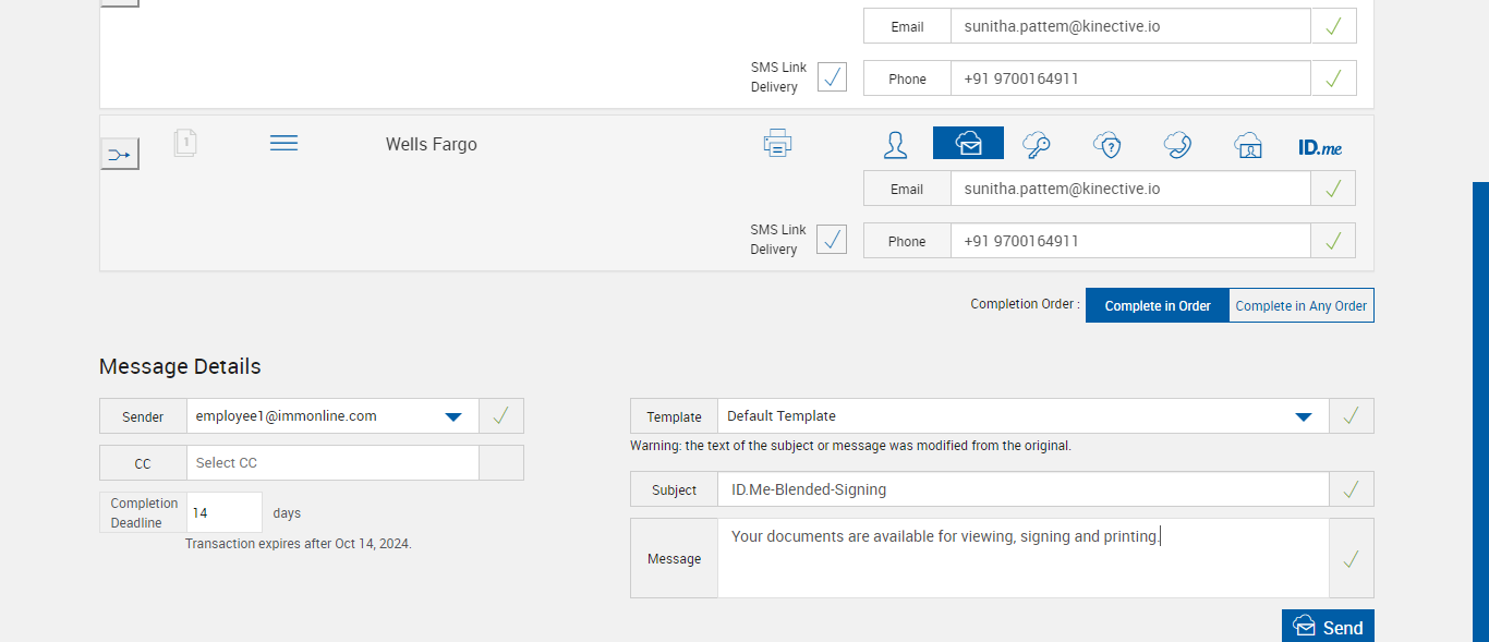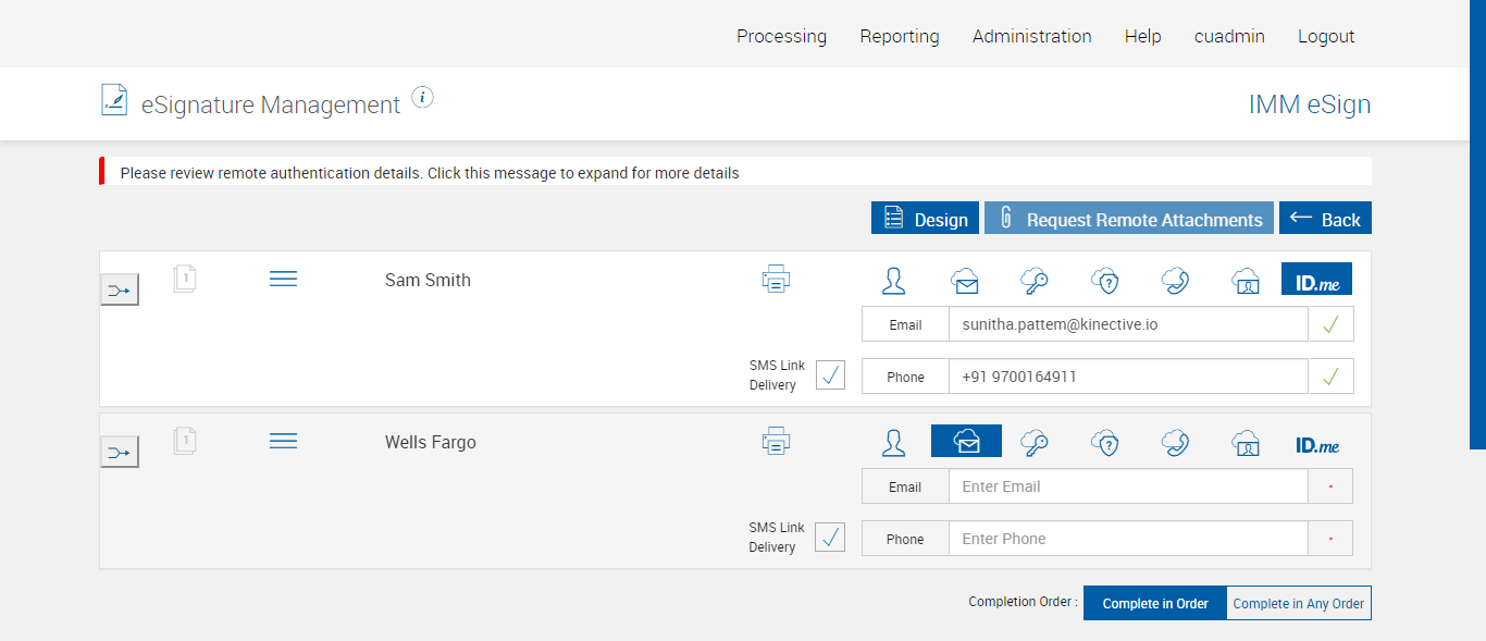 Expected: The session is successfully submitted for Remote Signatures message should be displayed