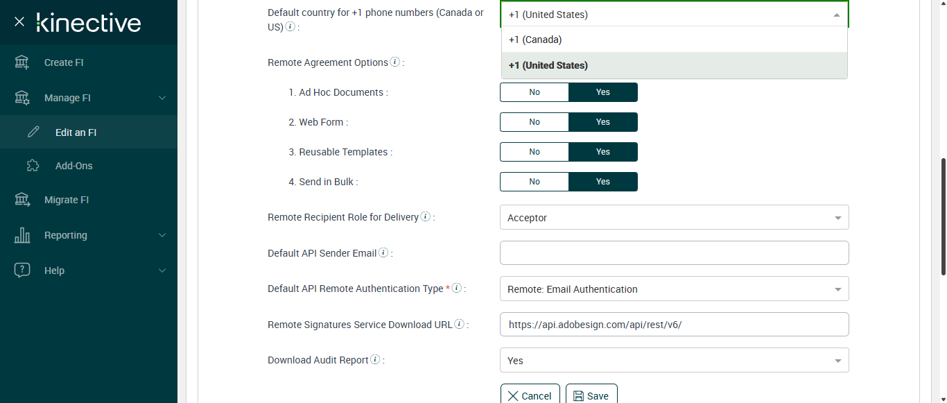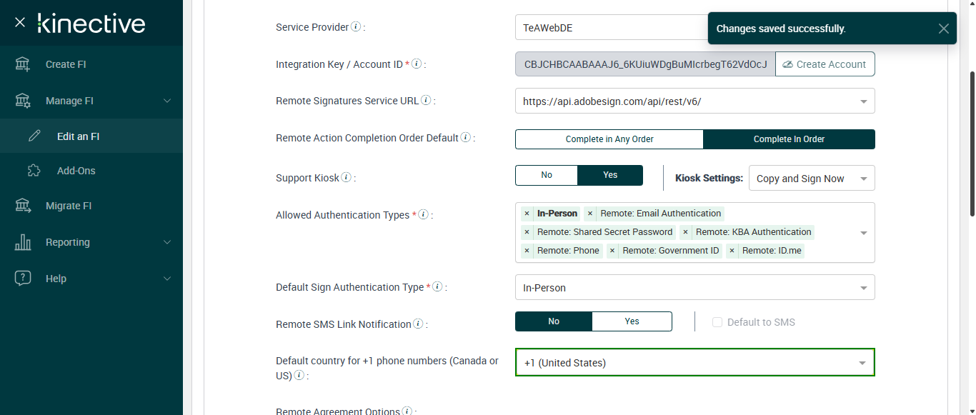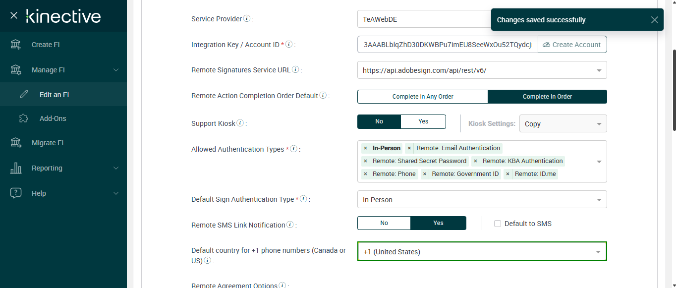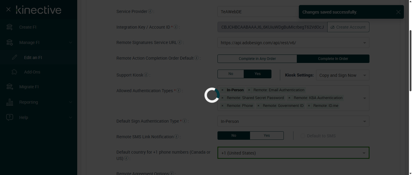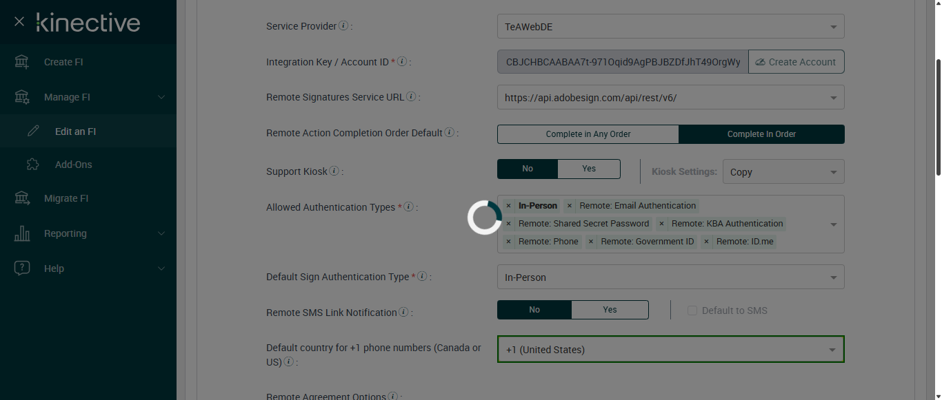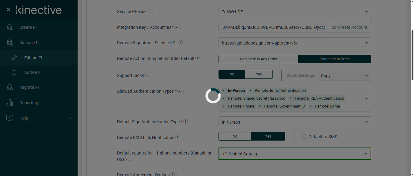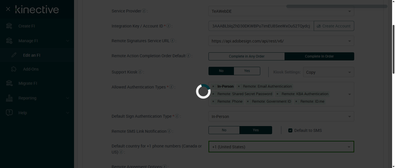 Verify Remote Settings Country Code Drop Down Existing FI - Fully Integrated - SignFI