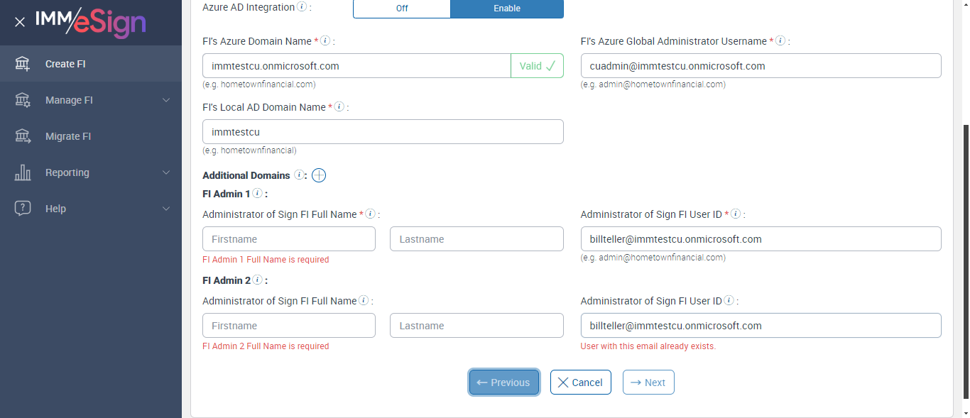 VerifyCreateFiAzureDetailsFiAdmin1AndFiAdmin2