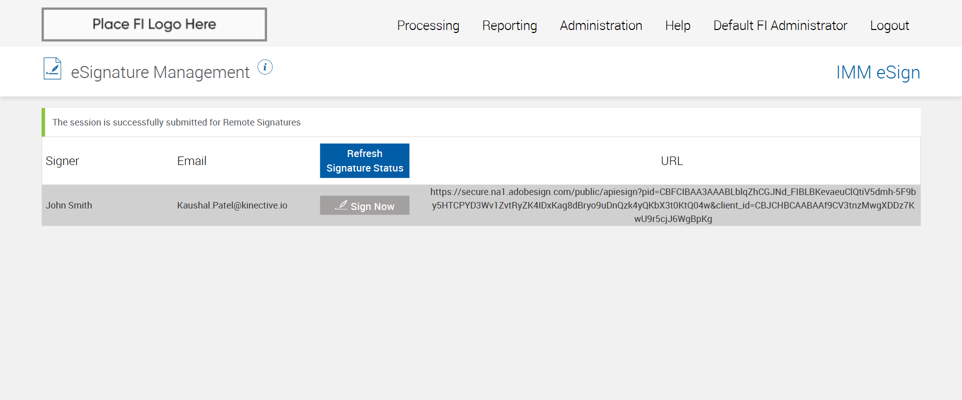 Successfully navigated to the 'eSignature Management' page [ScreenShot]