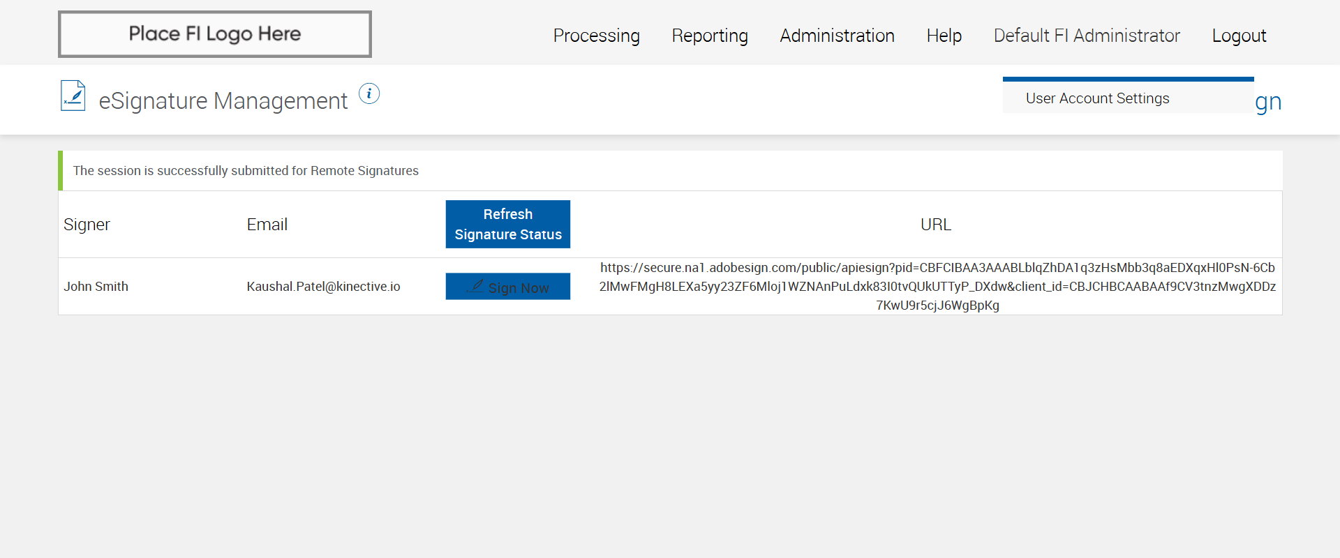 Successfully navigated to the 'eSignature Management' page [ScreenShot]