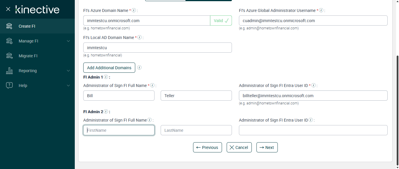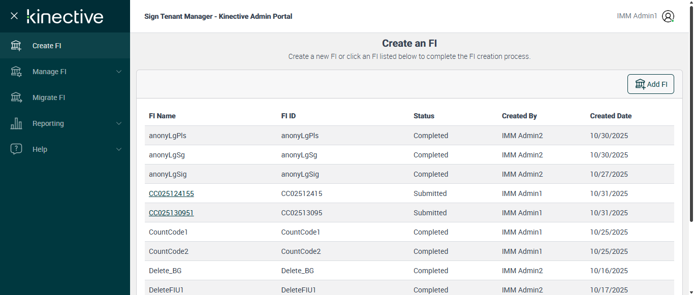 Successfully navigated to 'Create an FI' page [ScreenShot]