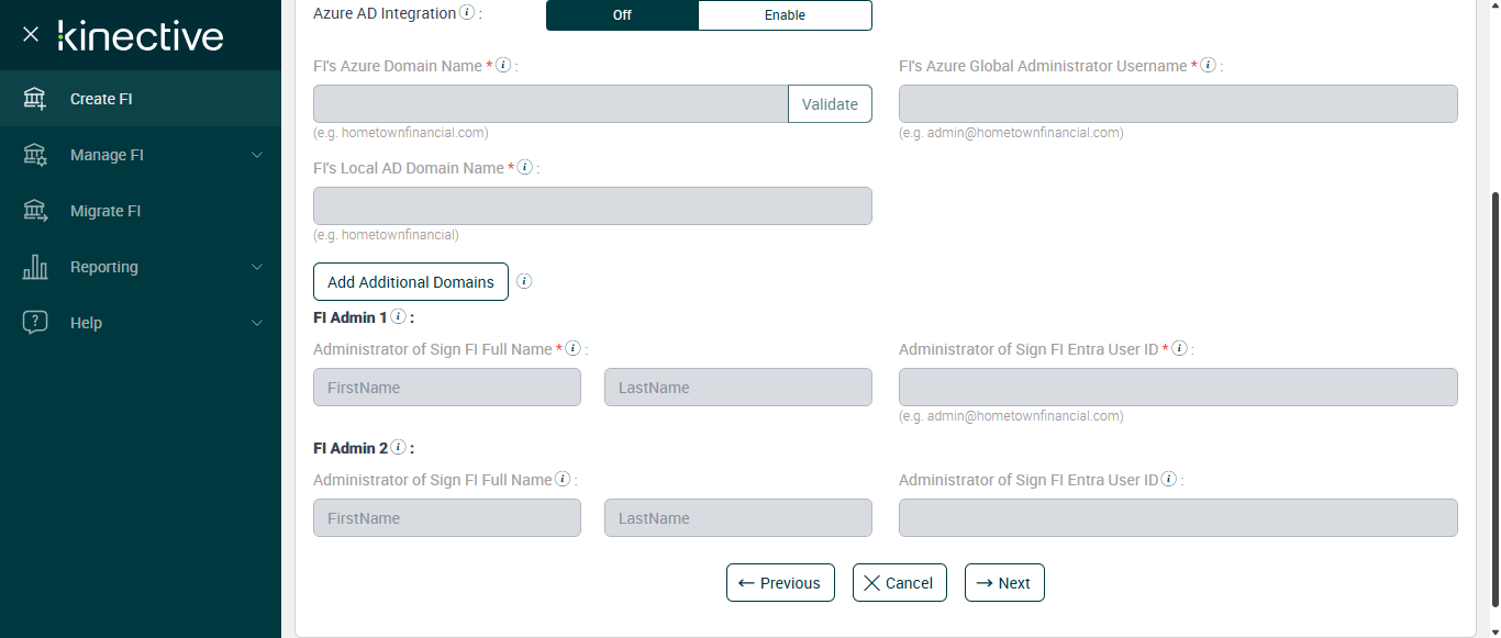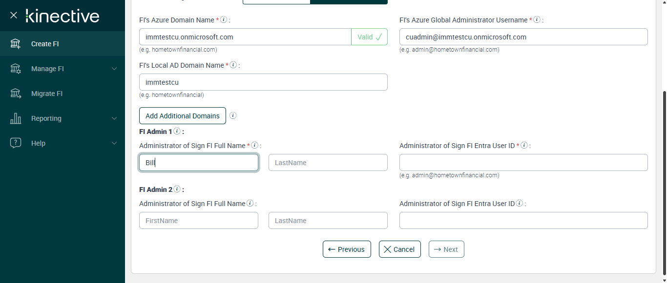 Successfully navigated to 'Create an FI' page [ScreenShot]