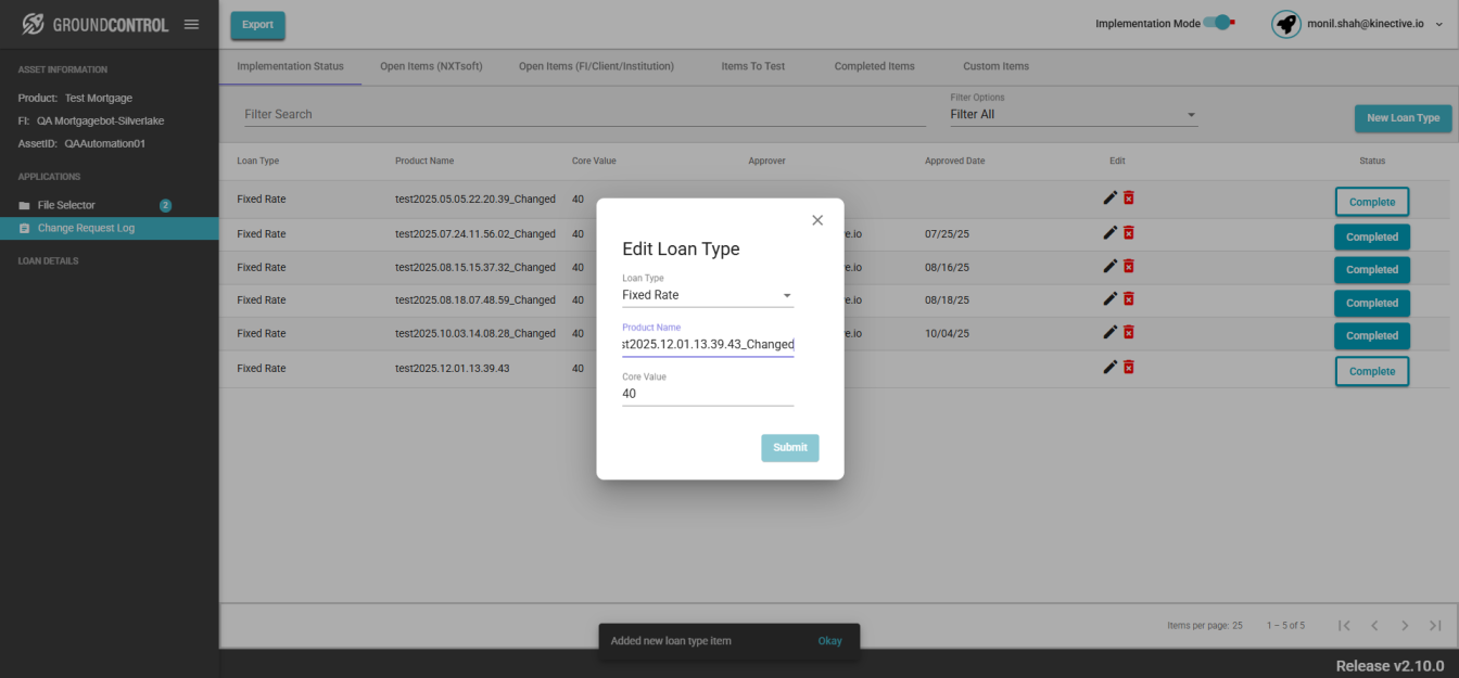 getLoans:Y;, Description=Submit the Loan and verify the success Popup, CHANGE REQUEST PAGEMAP=, LOGIN PAGEMAP=userName:monil.shah@kinective.io;