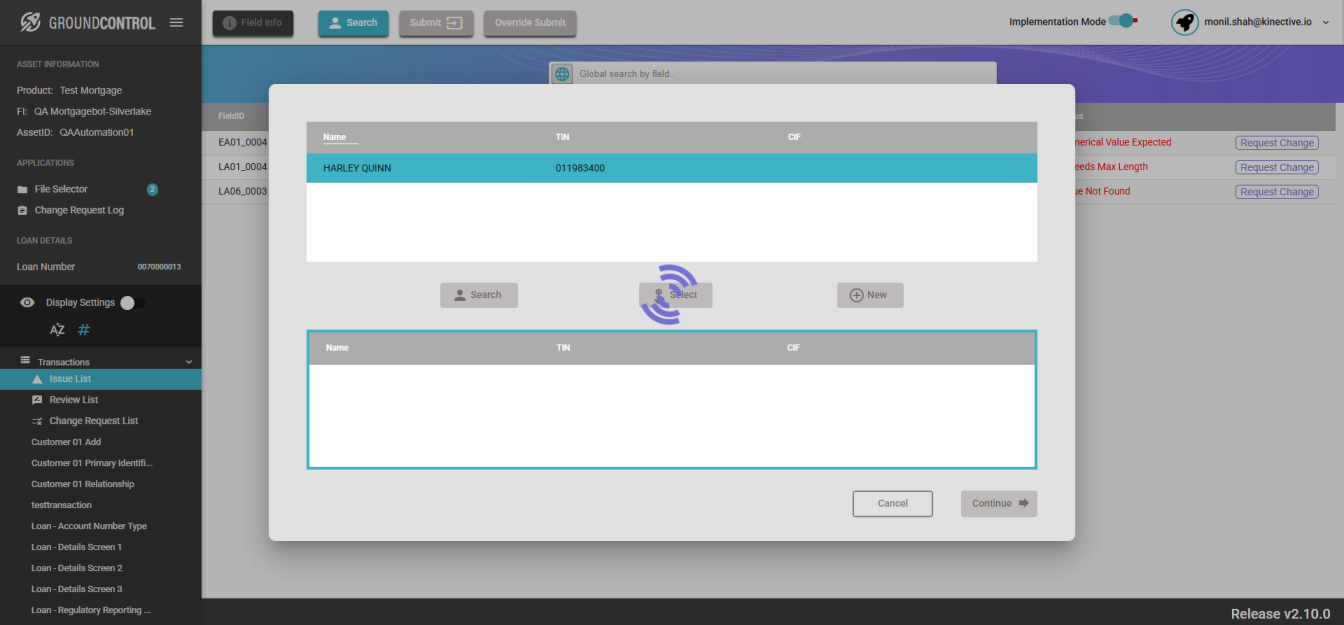 com.kinective.omniconnect.support.KinectiveException: Failure while Search and Select Loans.