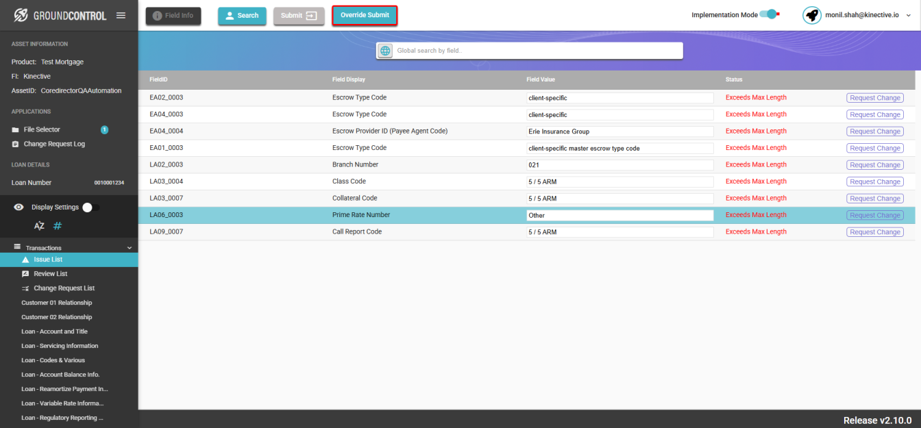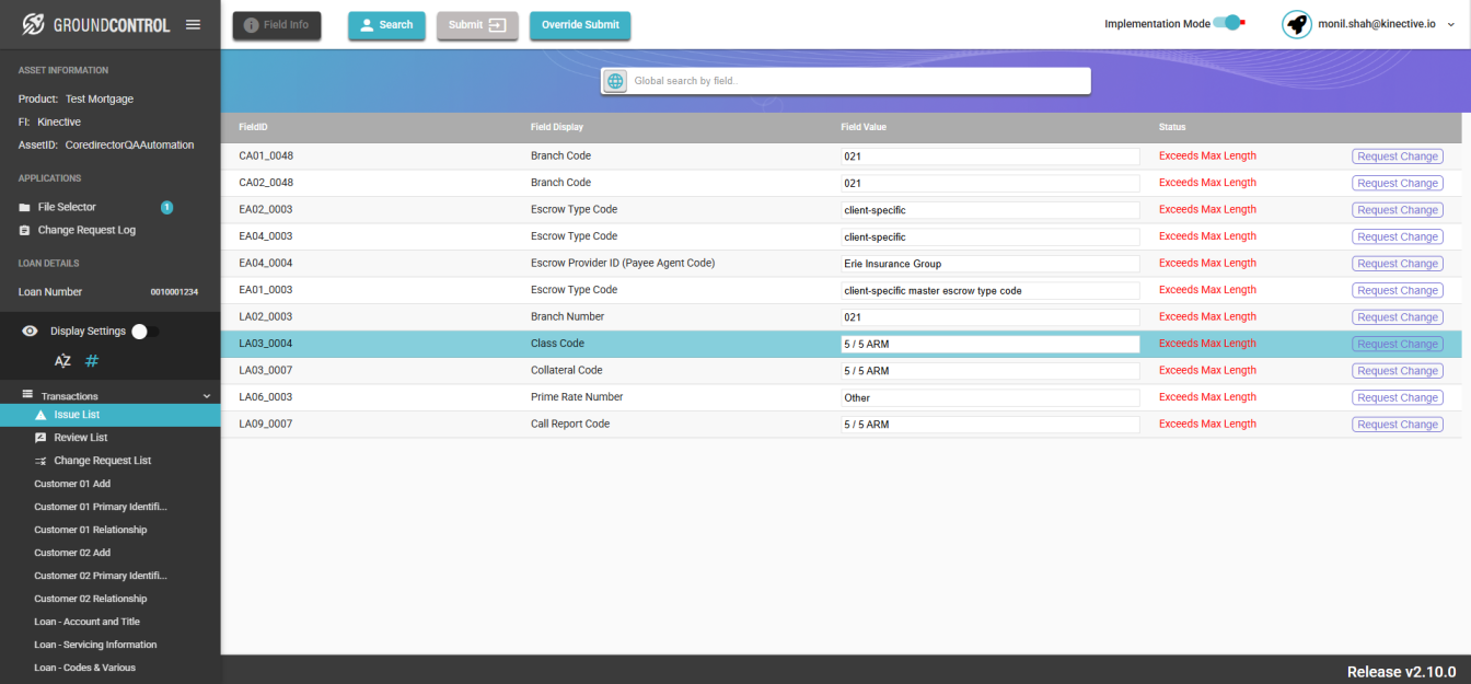 loanRow:LAND LOAN;, Description=Export the General Ledger (GL) CSV, CHANGE REQUEST PAGEMAP=Loan Number/File Number:;