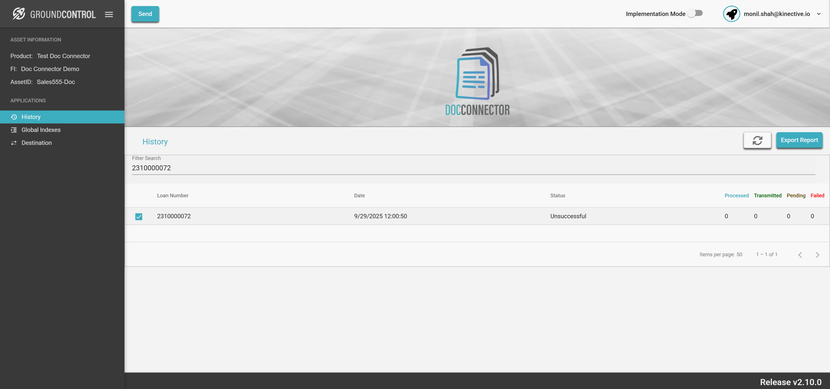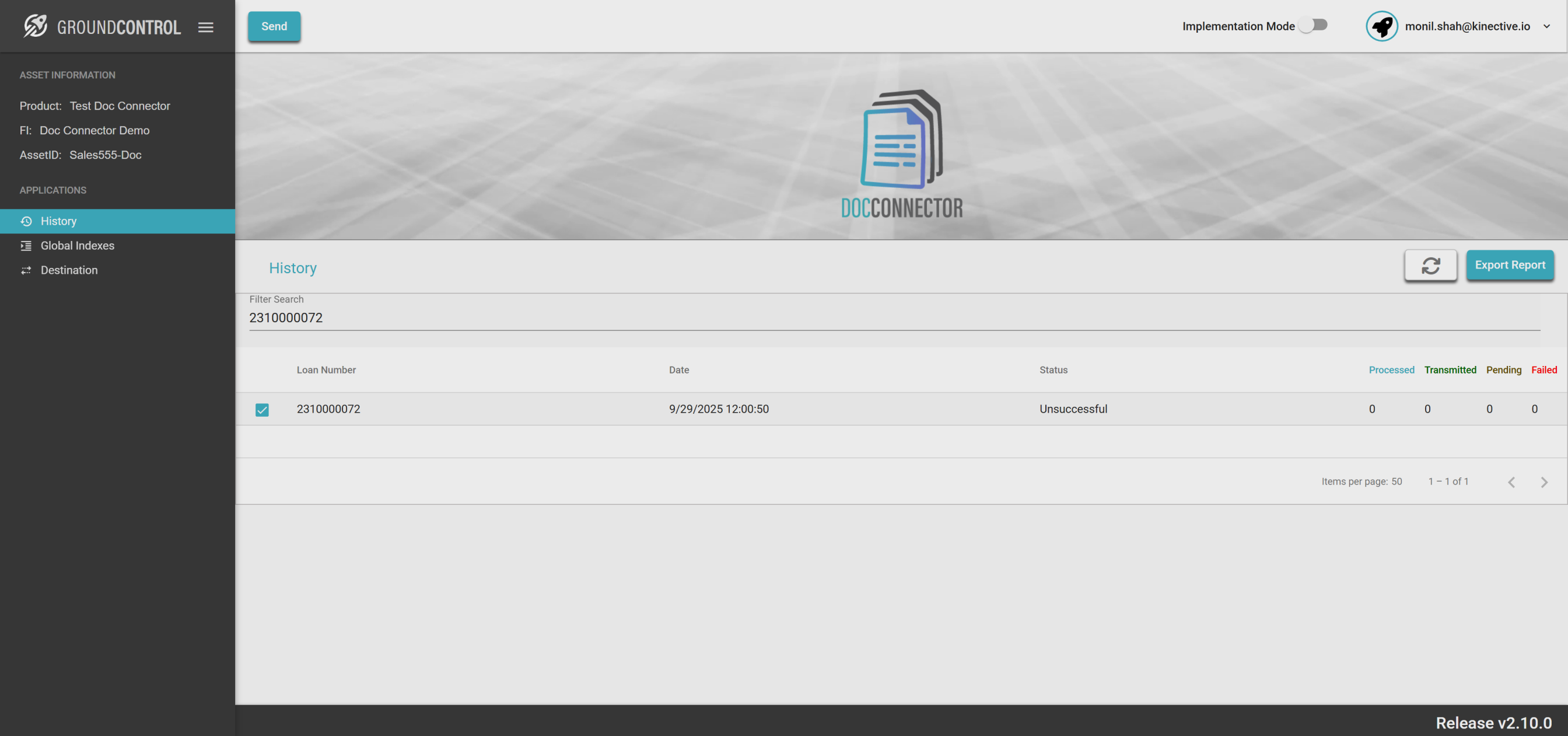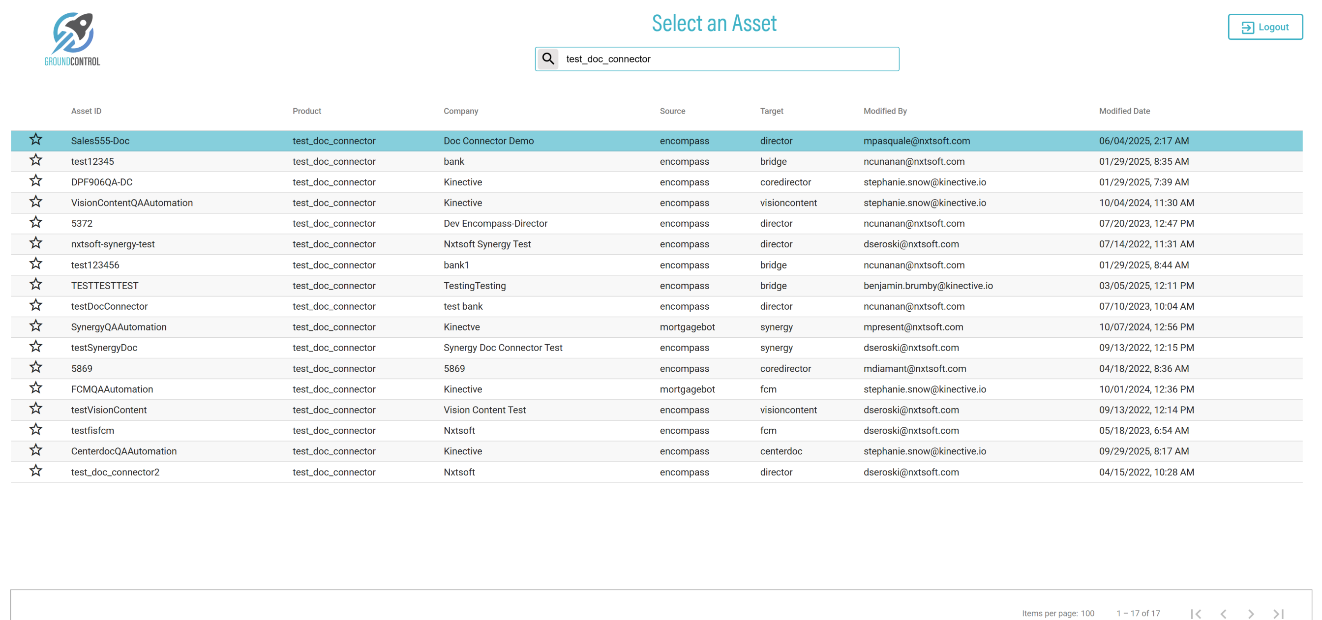 | {ASSET SELECTOR PAGEMAP= searchAsset:test_doc_connector; selectAssetId:Sales555-Doc; clickAssetId:Y; assetRow:;, TestID=exportAndVerifyHistoryReports, LOGIN PAGEMAP=userName:monil.shah@kinective.io; password:ab7UPKi34CnZIrG25Dl05g==; key:HelloMonil!ThisIsOMNI;, Description=Export the History Reports and verify the csvs, DOC CONNECTOR PAGEMAP=} |
