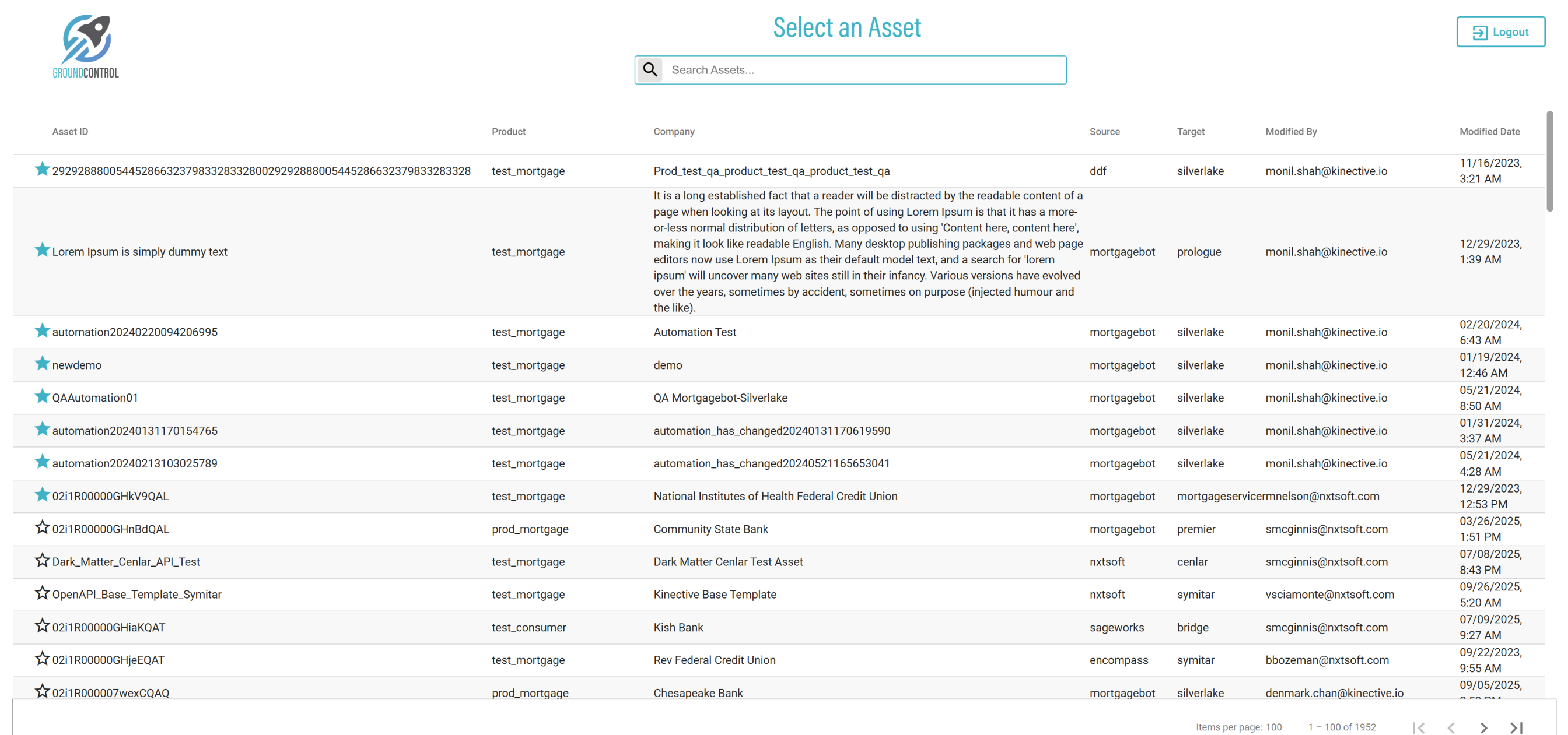 | {ASSET SELECTOR PAGEMAP=searchAsset:test_general_ledger_accounting,QAAutomation02,ProductDemo04,QAAutomation01,prod_mortgage; selectAssetId:QAAutomation03,QAAutomation02,ProductDemo04,QAAutomation01,ProductDemo01; clickAssetId:N,N,N,N,Y; assetRow:;, TestID=loginSearchAndOpenAsset, LOGIN PAGEMAP=userName:monil.shah@kinective.io; password:ab7UPKi34CnZIrG25Dl05g==; key:HelloMonil!ThisIsOMNI;, Description=Login and validate the Home Page, Search and Select the Assets} |