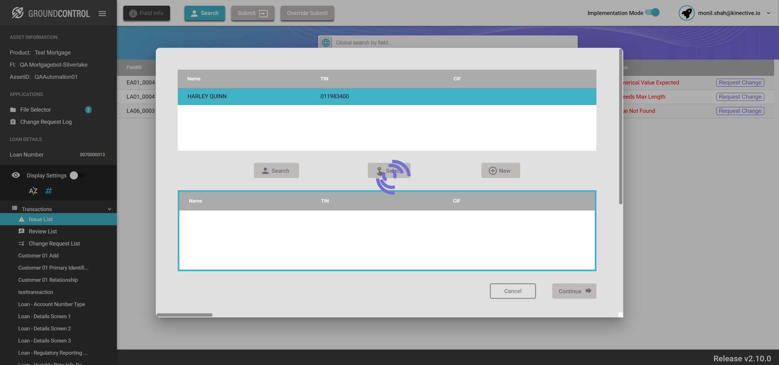 | {ASSET SELECTOR PAGEMAP= searchAsset:QAAutomation02; selectAssetId:QAAutomation02; clickAssetId:Y; assetRow:;, TestID=verifyErrorsOnLoanLookup, LOAN SELECTOR PAGEMAP=loanNumber:122210007322; taxId:; firstName:; lastName:; selectLoan:;, LOGIN PAGEMAP=userName:monil.shah@kinective.io; password:ab7UPKi34CnZIrG25Dl05g==; key:HelloMonil!ThisIsOMNI;, Description=Search the Loan on Loan Lookup Page and verify the errors} |