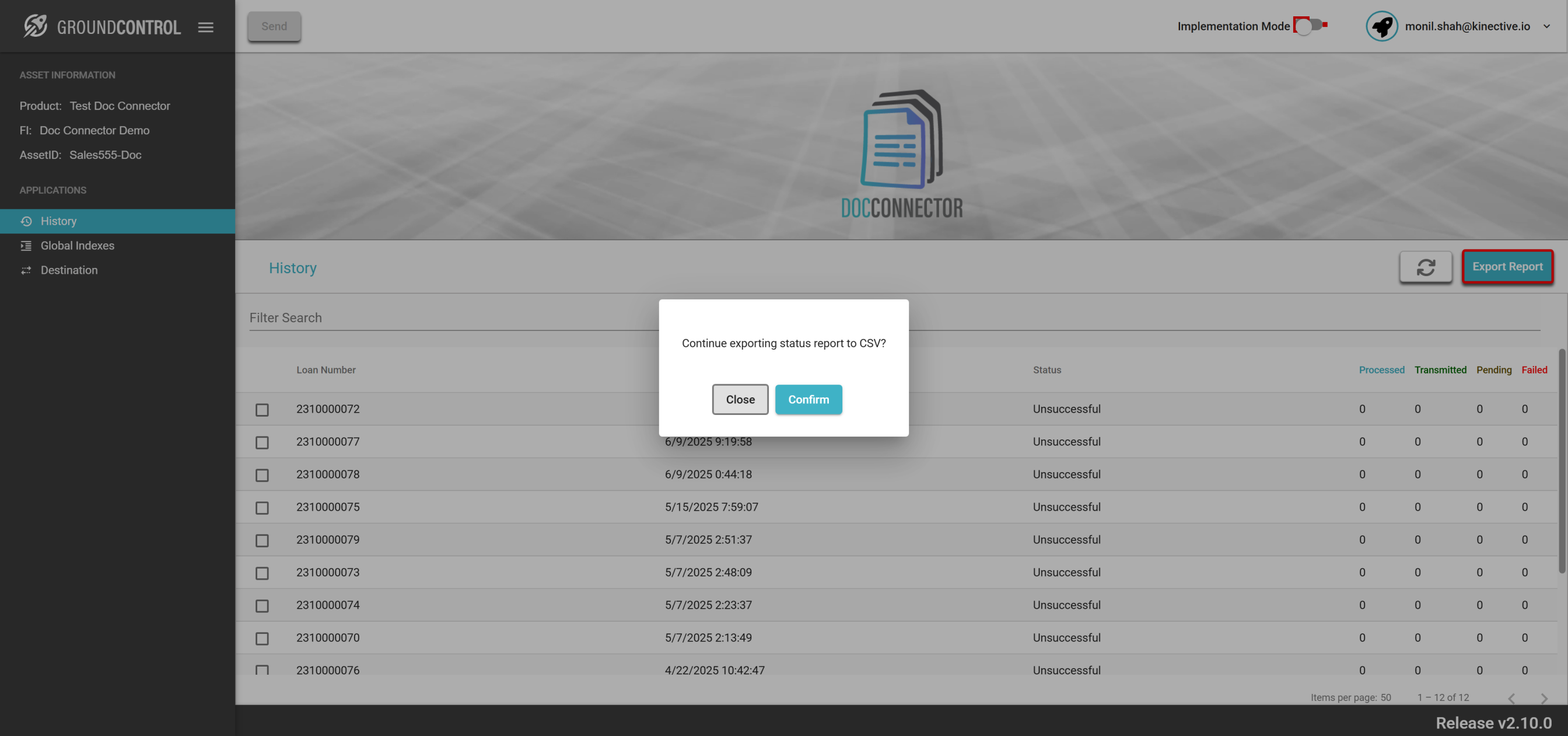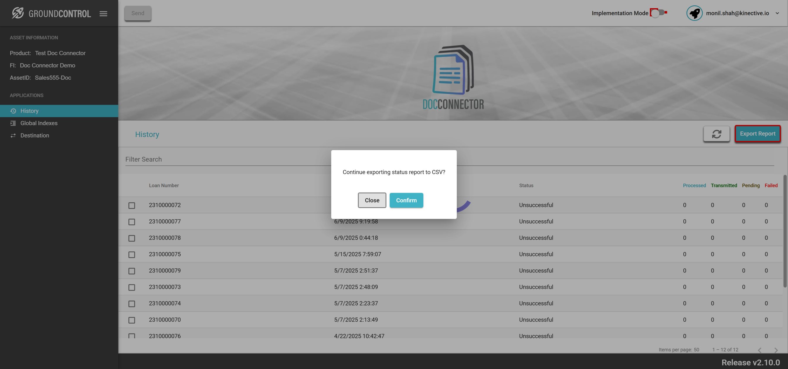 | {ASSET SELECTOR PAGEMAP= searchAsset:test_doc_connector; selectAssetId:Sales555-Doc; clickAssetId:Y; assetRow:;, TestID=exportAndVerifyHistoryReports, LOGIN PAGEMAP=userName:monil.shah@kinective.io; password:ab7UPKi34CnZIrG25Dl05g==; key:HelloMonil!ThisIsOMNI;, Description=Export the History Reports and verify the csvs, DOC CONNECTOR PAGEMAP=} |