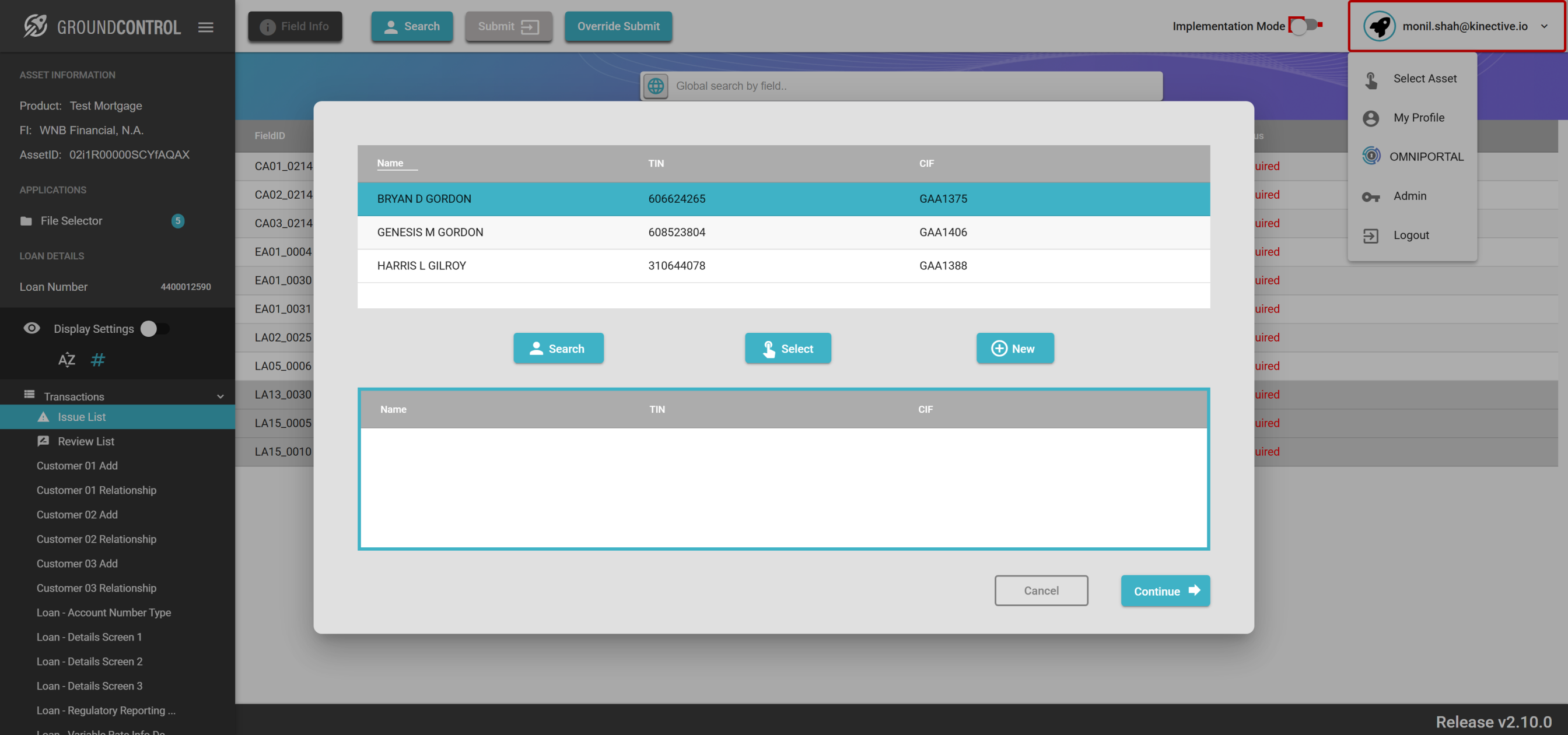| {ASSET SELECTOR PAGEMAP= searchAsset:QAAutomation01; selectAssetId:QAAutomation01; clickAssetId:Y; assetRow:;, TestID=searchCancelBorrower, LOAN SELECTOR PAGEMAP=loanNumber:0070000013; taxId:011983400; firstName:; lastName:; loanRow:;, Description=Search the borrower and cancel the dialog, CHANGE REQUEST PAGEMAP=, LOGIN PAGEMAP=userName:monil.shah@kinective.io; password:ab7UPKi34CnZIrG25Dl05g==; key:HelloMonil!ThisIsOMNI;, TRANSACTIONS PAGEMAP=hiddenTransactions:; searchTransactionByField:; searchTransactionGlobal:; fieldId:;} |