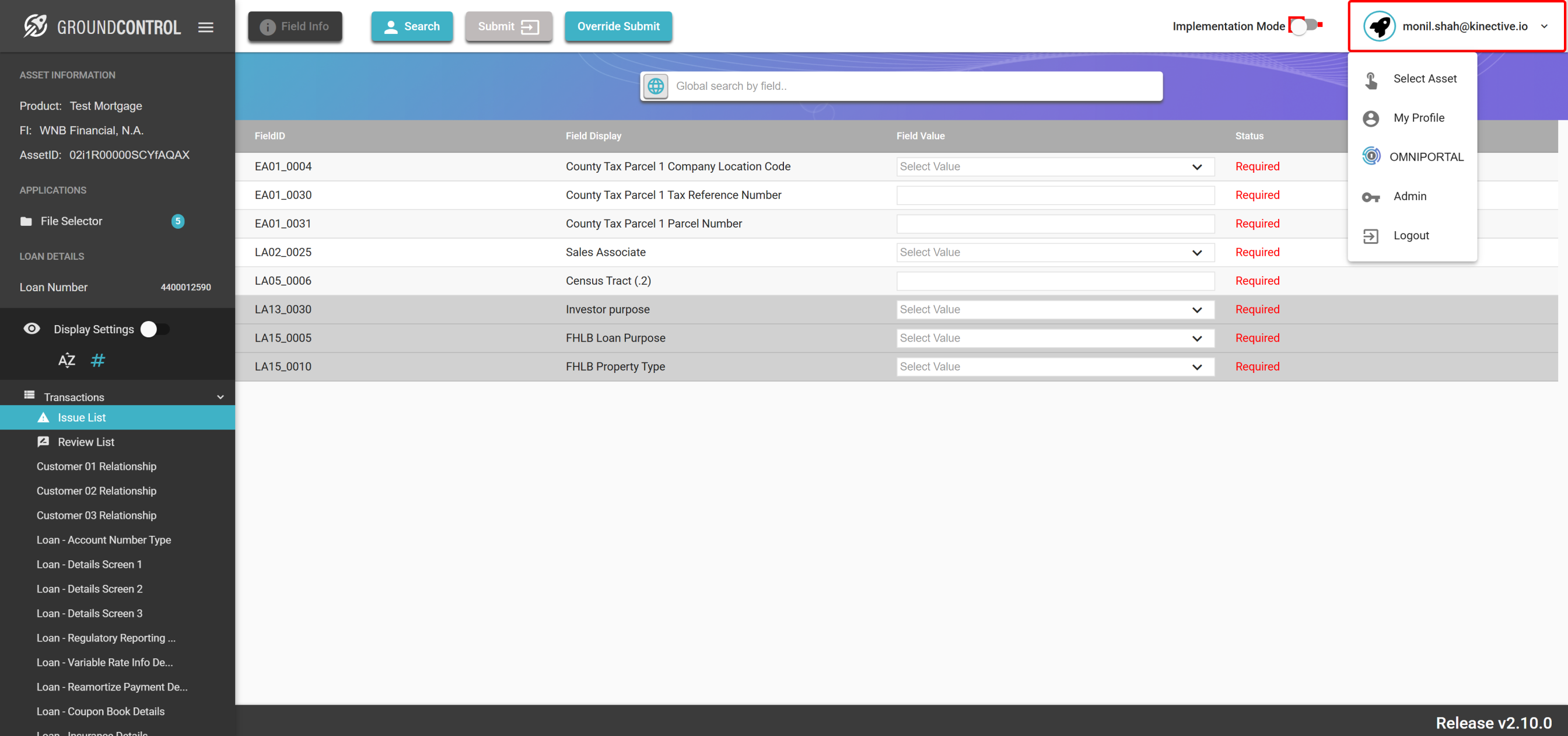 | {ASSET SELECTOR PAGEMAP= searchAsset:QAAutomation01; selectAssetId:QAAutomation01; clickAssetId:Y; assetRow:;, TestID=verifyAndResolveIssueList, LOAN SELECTOR PAGEMAP=loanNumber:0070000013; taxId:011983400; firstName:; lastName:; loanRow:;, Description=Verify field errors and Resolve them, CHANGE REQUEST PAGEMAP=, LOGIN PAGEMAP=userName:monil.shah@kinective.io; password:ab7UPKi34CnZIrG25Dl05g==; key:HelloMonil!ThisIsOMNI;, TRANSACTIONS PAGEMAP=hiddenTransactions:; searchTransactionByField:; searchTransactionGlobal:; fieldId:;} |