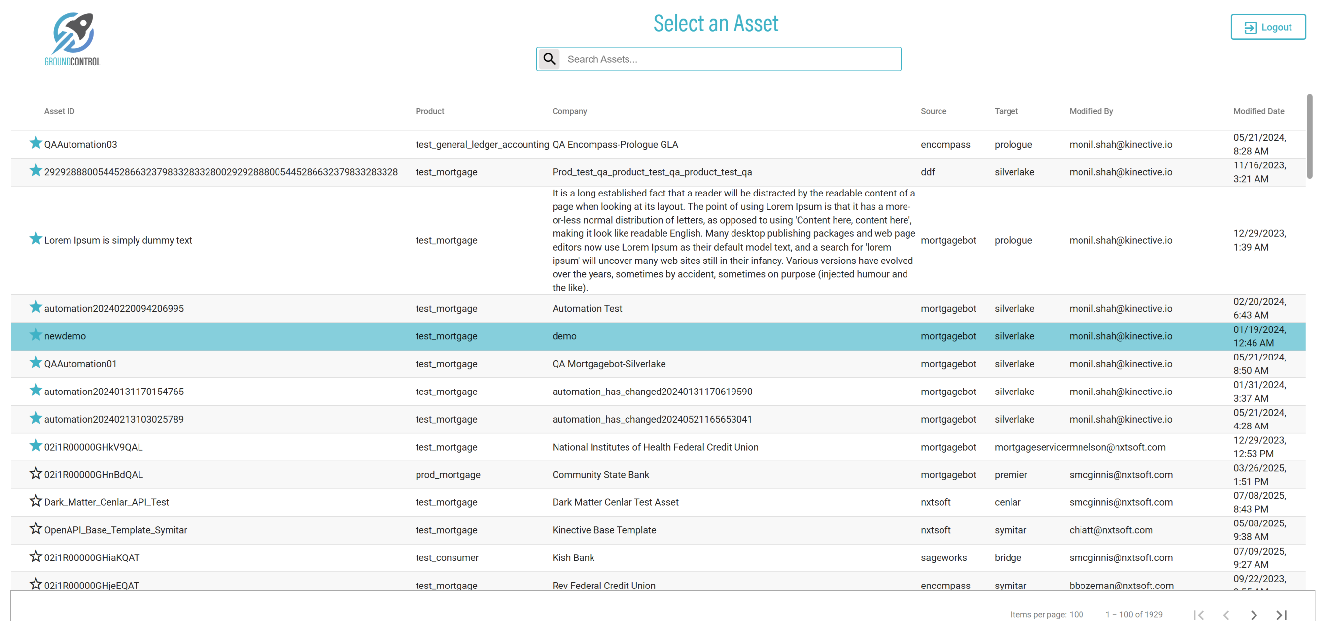 | {ASSET SELECTOR PAGEMAP=searchAsset:test_general_ledger_accounting,QAAutomation02,ProductDemo04,QAAutomation01,prod_mortgage; selectAssetId:QAAutomation03,QAAutomation02,ProductDemo04,QAAutomation01,ProductDemo01; clickAssetId:N,N,N,N,Y; assetRow:;, TestID=loginSearchAndOpenAsset, LOGIN PAGEMAP=userName:monil.shah@kinective.io; password:ab7UPKi34CnZIrG25Dl05g==; key:HelloMonil!ThisIsOMNI;, Description=Login and validate the Home Page, Search and Select the Assets} |
