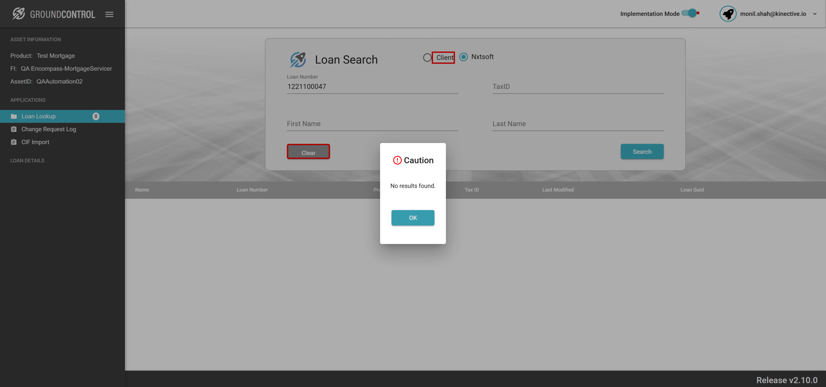 | {ASSET SELECTOR PAGEMAP= searchAsset:QAAutomation02; selectAssetId:QAAutomation02; clickAssetId:Y; assetRow:;, TestID=verifyErrorsOnLoanLookup, LOAN SELECTOR PAGEMAP=loanNumber:1221100047; taxId:; firstName:; lastName:; selectLoan:30 Years Fixed;, LOGIN PAGEMAP=userName:monil.shah@kinective.io; password:ab7UPKi34CnZIrG25Dl05g==; key:HelloMonil!ThisIsOMNI;, Description=Search the Loan on Loan Lookup Page and verify the errors} |