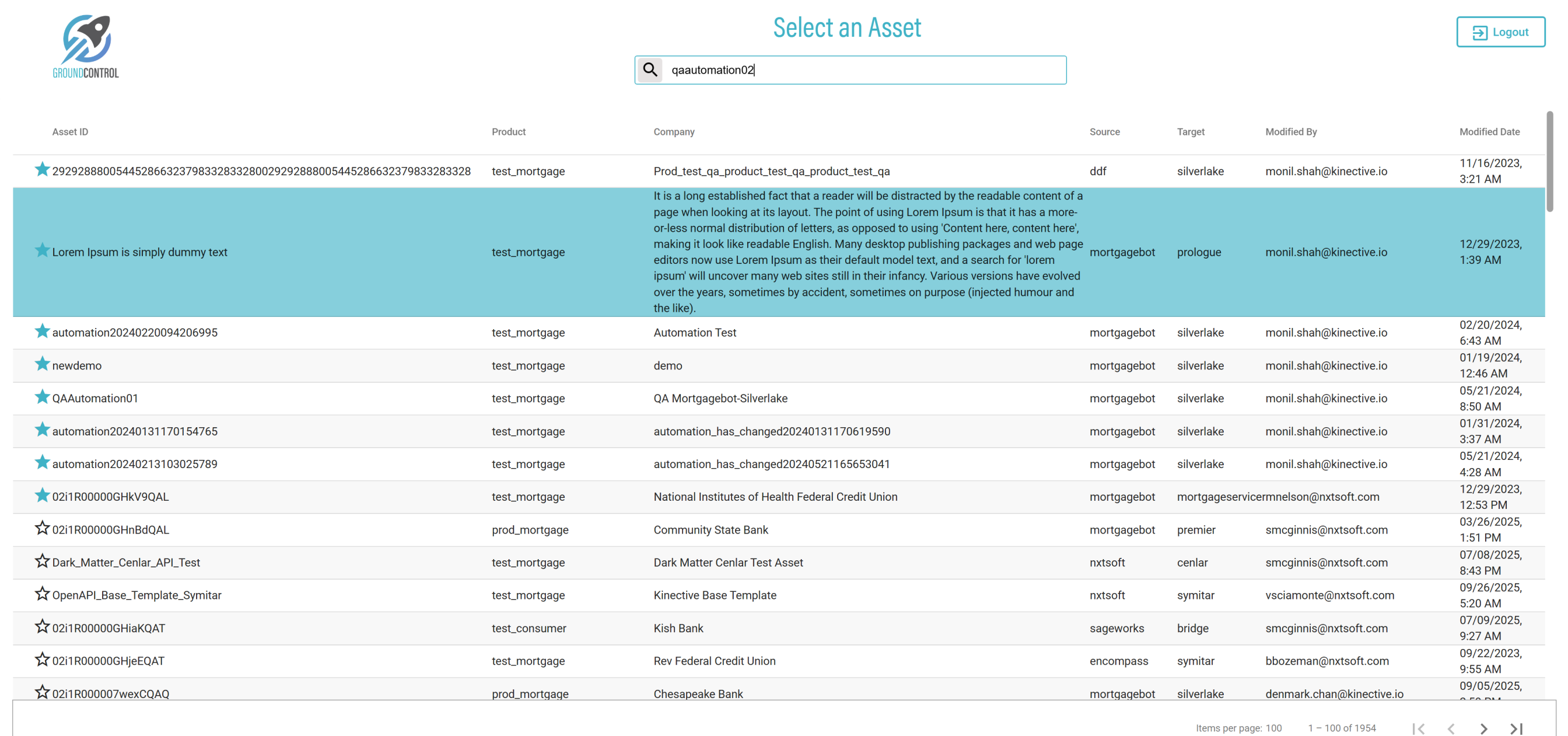 {ASSET SELECTOR PAGEMAP=searchAsset:test_general_ledger_accounting,QAAutomation02,ProductDemo04,QAAutomation01,prod_mortgage; selectAssetId:QAAutomation03,QAAutomation02,ProductDemo04,QAAutomation01,02i1R00000GHnBdQAL; clickAssetId:N,N,N,N,Y; assetRow:;, TestID=loginSearchAndOpenAsset, LOGIN PAGEMAP=userName:monil.shah@kinective.io; password:ab7UPKi34CnZIrG25Dl05g==; key:HelloMonil!ThisIsOMNI;, Description=Login and validate the Home Page, Search and Select the Assets}