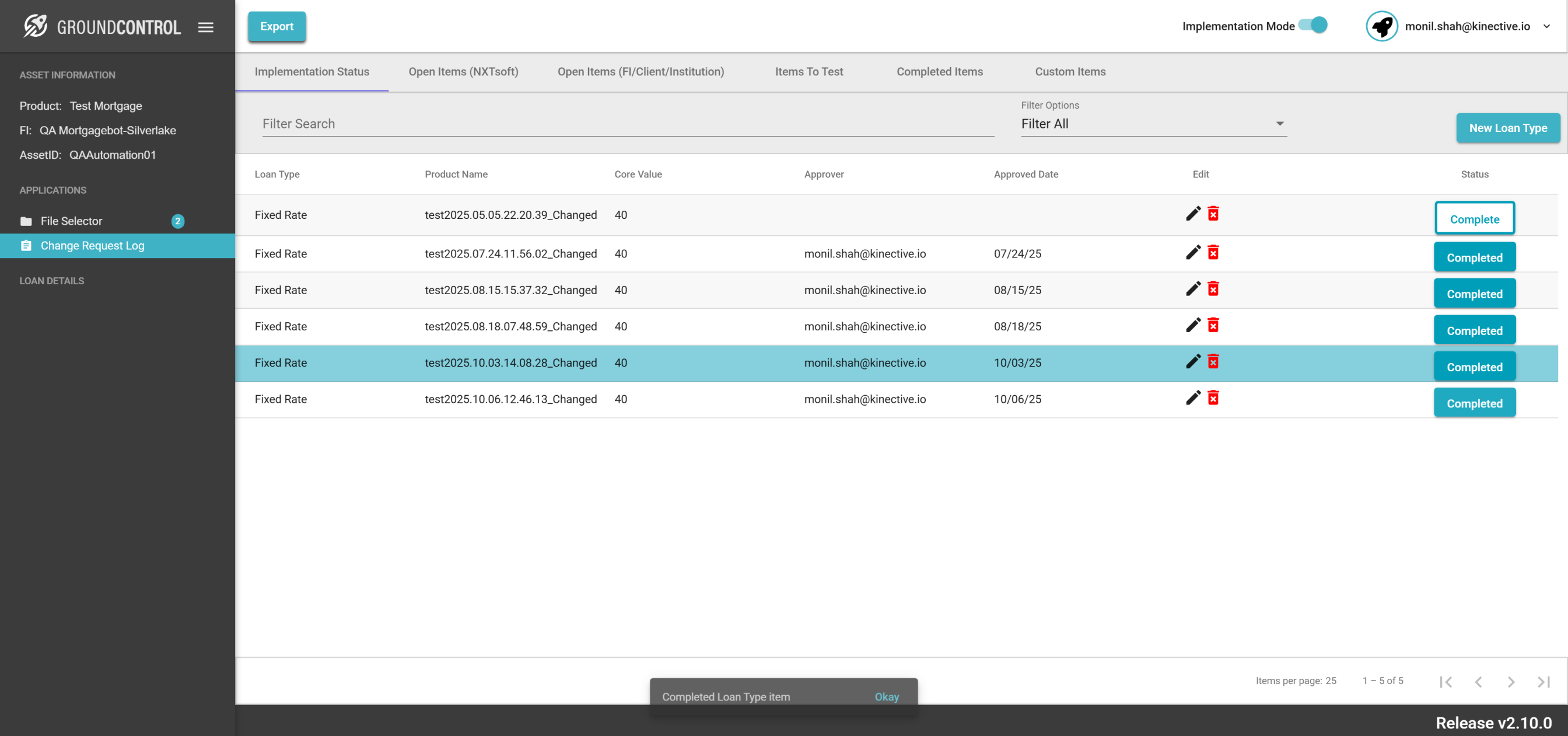 loanRow:;, Description=Request Change button for the field Id and Verify the change request, CHANGE REQUEST PAGEMAP=addLoanType:Y;