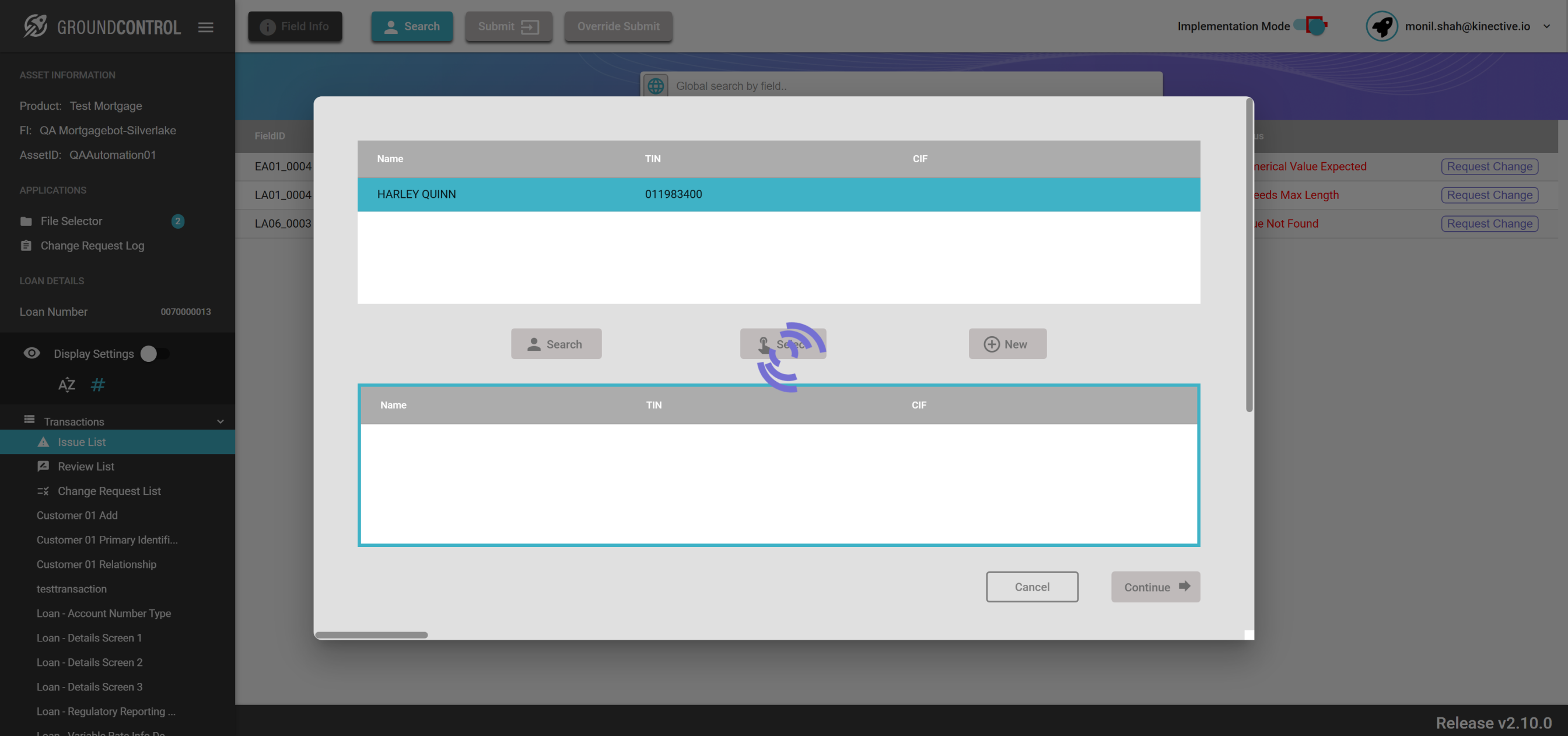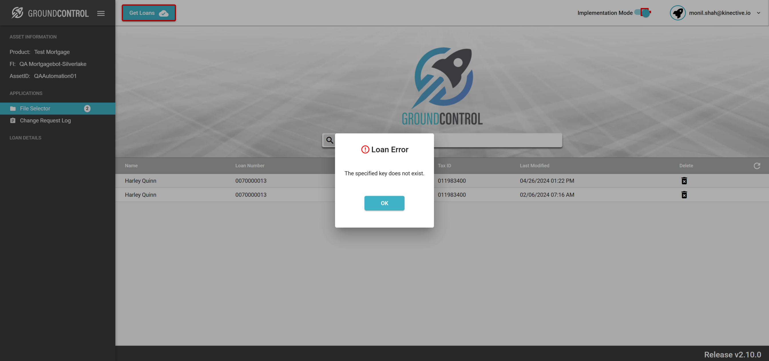 | {ASSET SELECTOR PAGEMAP= searchAsset:QAAutomation02; selectAssetId:QAAutomation02; clickAssetId:Y; assetRow:;, TestID=verifyErrorsOnLoanLookup, LOAN SELECTOR PAGEMAP=loanNumber:1221100047; taxId:; firstName:; lastName:; selectLoan:30 Years Fixed;, LOGIN PAGEMAP=userName:monil.shah@kinective.io; password:ab7UPKi34CnZIrG25Dl05g==; key:HelloMonil!ThisIsOMNI;, Description=Search the Loan on Loan Lookup Page and verify the errors} |