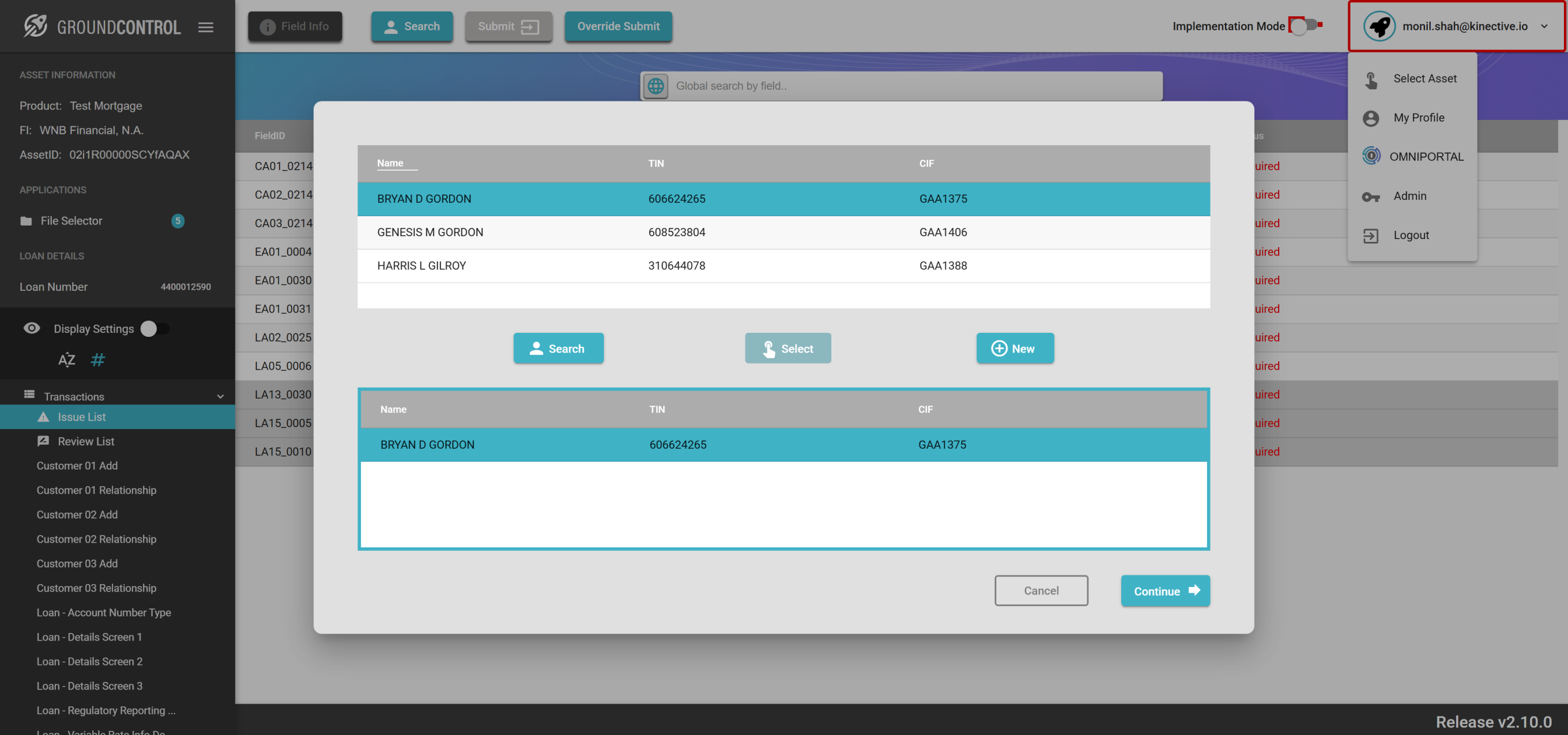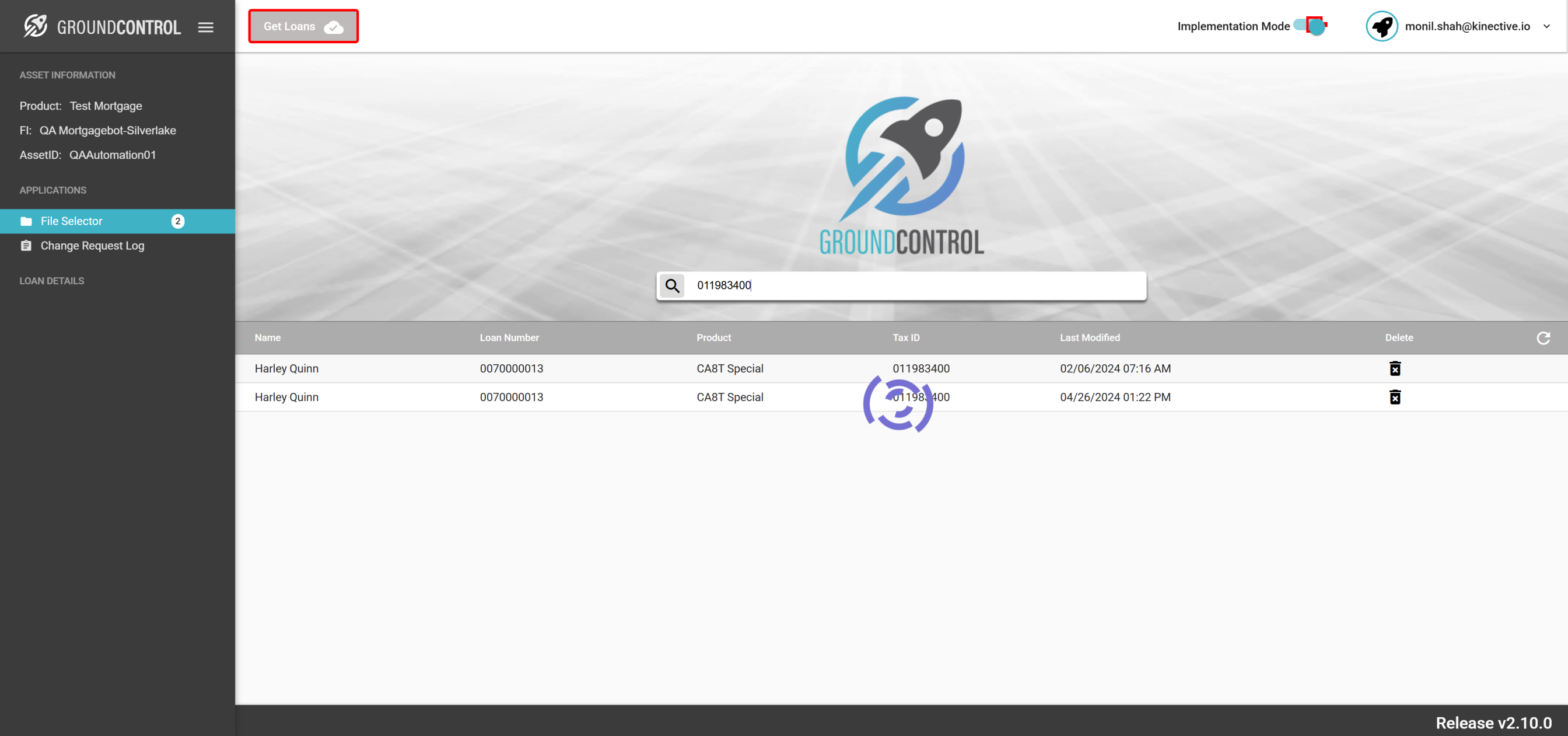 | {ASSET SELECTOR PAGEMAP= searchAsset:QAAutomation02; selectAssetId:QAAutomation02; clickAssetId:Y; assetRow:;, TestID=verifyLoansOnLoanLookupPg, LOAN SELECTOR PAGEMAP=loanNumber:2102003111; taxId:551-50-7879; firstName:; lastName:; selectLoan:30 Year Fixed;, LOGIN PAGEMAP=userName:monil.shah@kinective.io; password:ab7UPKi34CnZIrG25Dl05g==; key:HelloMonil!ThisIsOMNI;, Description=Verify different Loans on Loan Lookup Page} |