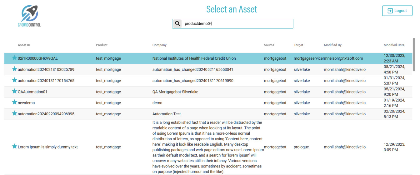 [ScreenShot] Failure while search and click on Assets productdemo01 [ScreenShot]
