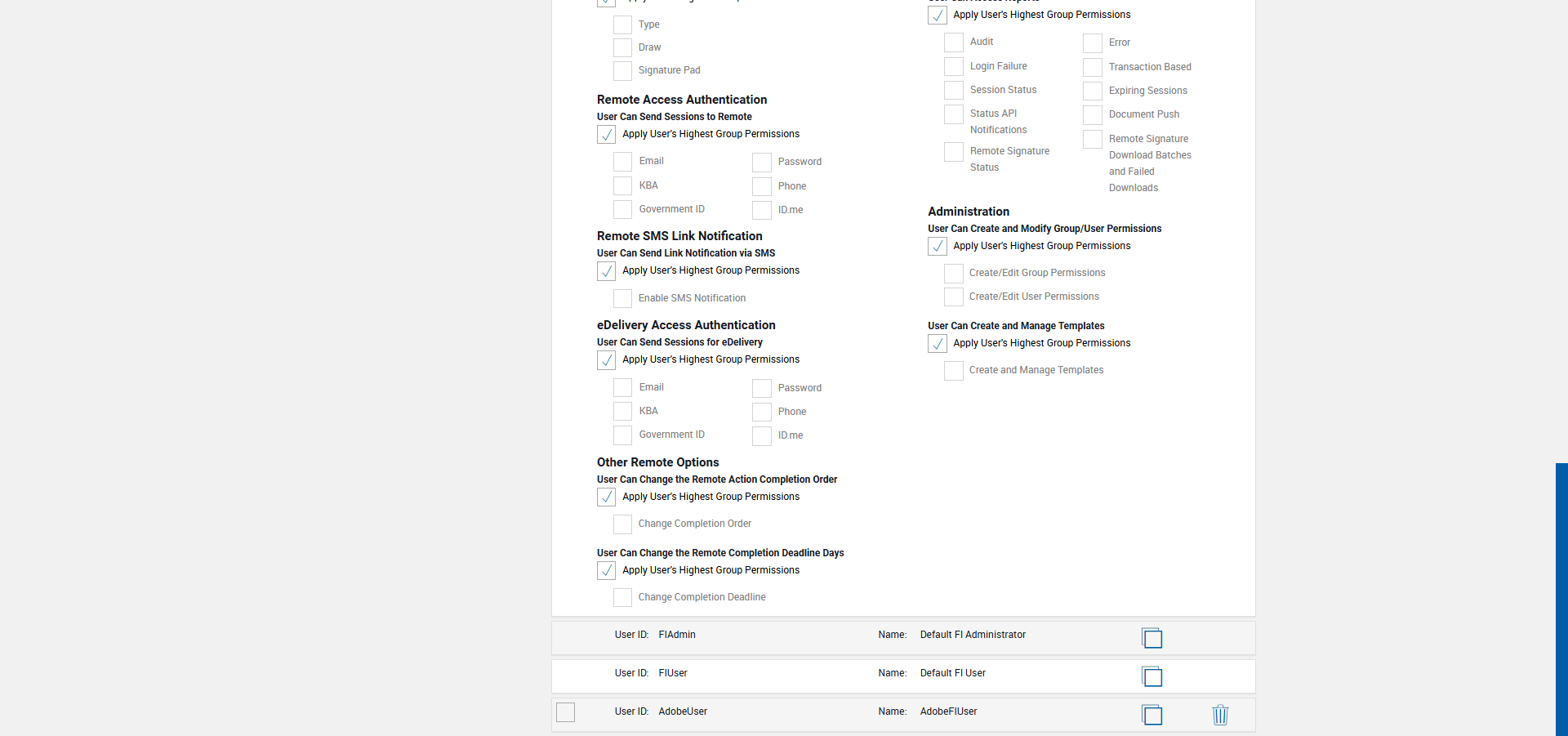 | {NewGroup=, Group=, EmailID=, FI_Name=kp1, Description=Verify new User permission for Adobe SMS, Login_User_ID=fiadmin, Address=, SearchUser=, Add_Dictionary=, GRP_PermissionRadio=, Filepath=, Effect_Summary=, Name=, GRP_PermissionChkBox=, NewUser_ID=, TestID=AdobeSMSUserMaintenance, IndexSource=, PartiesToView=, Access_Password=, iMMAdminSetting=true, NewName=, Confirm_Reset_Password=, User_ID=, Notes=, Reset_Password=, Copy_User_ID=, NewDescription=, Enter_eSignClient=, ZipCode=, FI_ID=kp1, City=, Delete_Dictionary=, AttachmentTypeOption=, Confirm_Password=, NewEmailID=, State=, Login_Password=P@ssword1!, UserURL=, eSignClient=, Domain=, UserType=IMM Admin2, Copy_Tab=} |