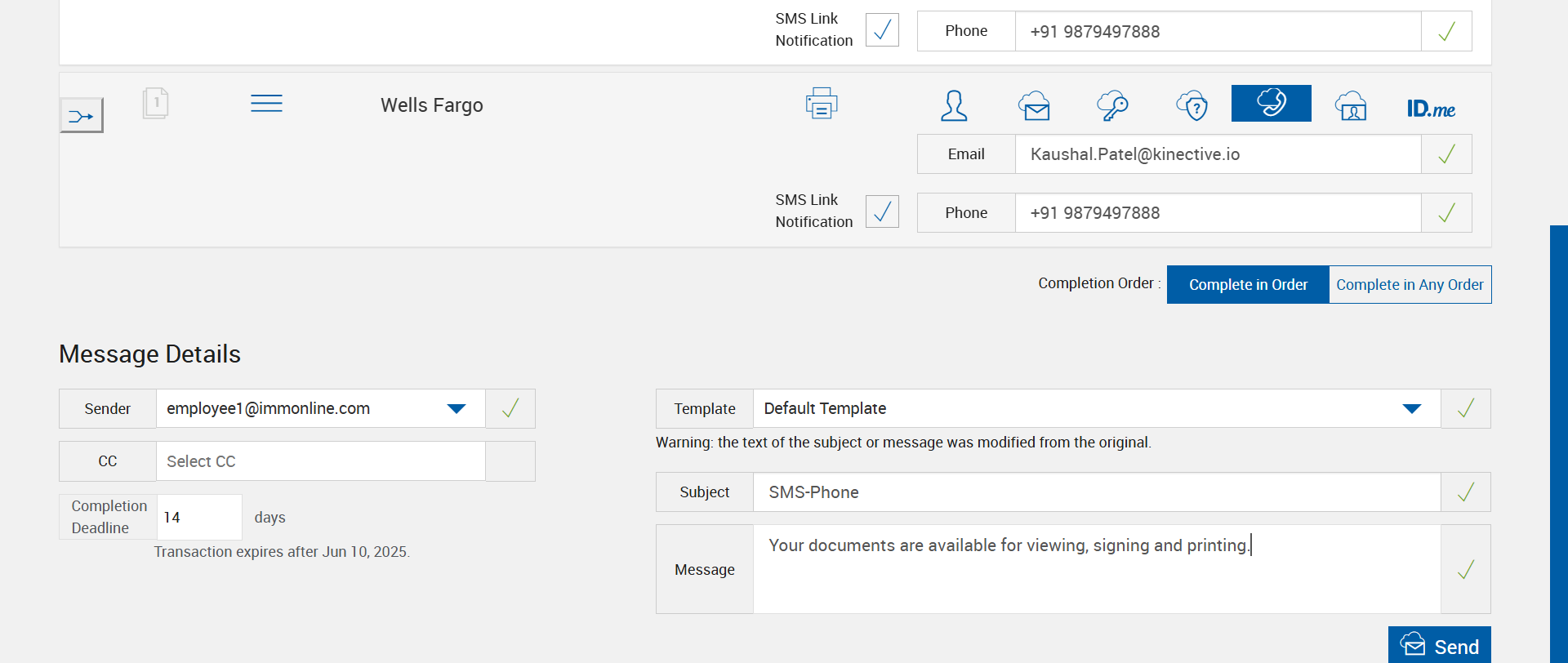 | 08:32:03 AM | Successfully verified by default SMS Link Notification checkbox is checked for Phone signing [ScreenShot] | |